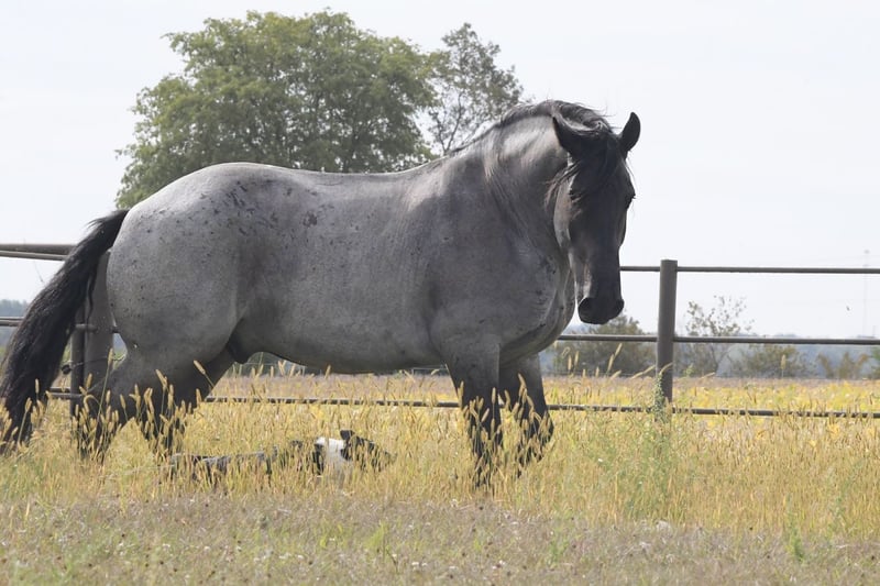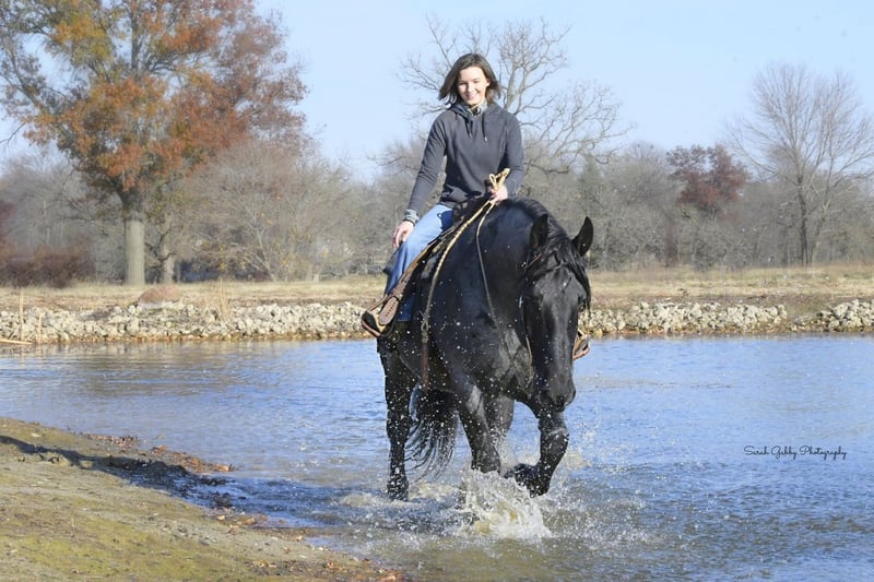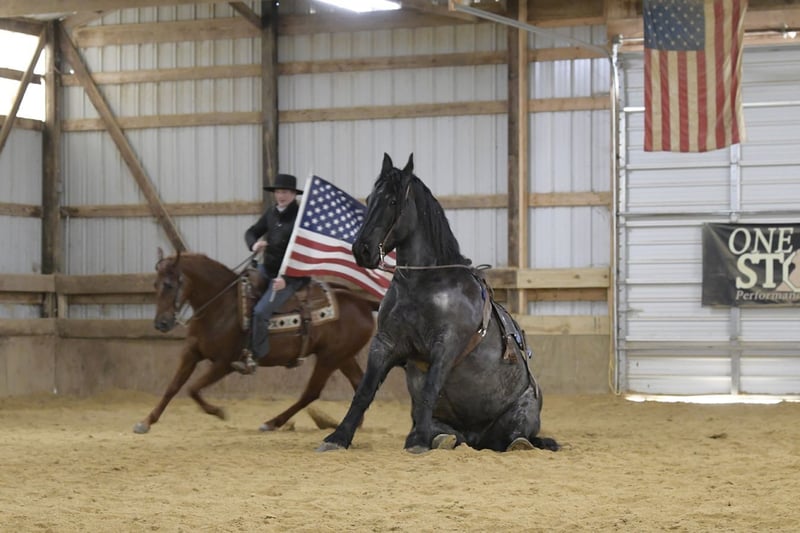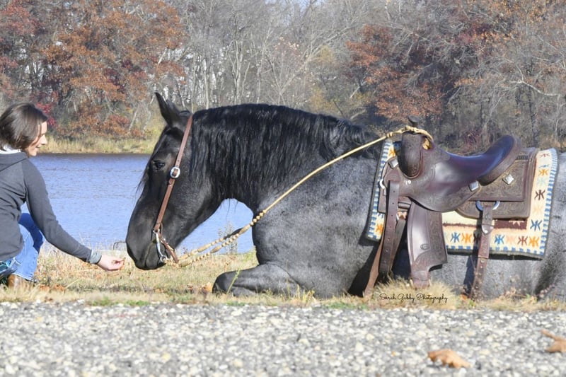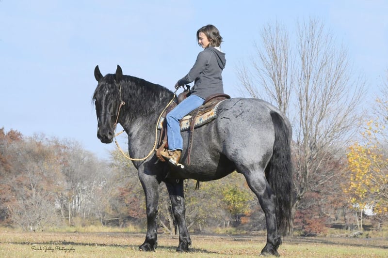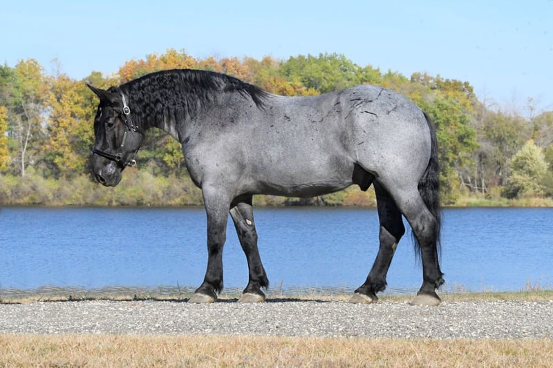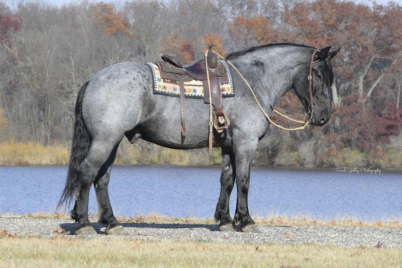 ⚜️𝐓𝐇𝐄 𝐅𝐀𝐋𝐋 𝐇𝐄𝐑𝐈𝐓𝐀𝐆𝐄 𝐂𝐋𝐀𝐒𝐒𝐈𝐂⚜️ Happening now thru MONDAY | NOVEMBER 3rd - Available EXCLUSIVELY on HorseBid's website! For more details and to register visit: www.Horsebid.com CONSIGNOR CONTACT: One Stop Performance Horses 507-208-5994 LOCATION: Holmen, WI BREED: Draft Cross REGISTERED: Yes REGISTERED NAME: Grand Slamm COLOR: Blue Roan HEIGHT: 16.2 AGE: 6 GENDER: Gelding Grand Slam, now affectionately known as Blue, was sold this past February to a wonderful buyer who instantly fell in love with him. Unfortunately the buyer has recently had some health changes that prevents him from being able to ride, and will prevent him from riding in the future. He has made the extremely hard decision to find Blue a new home with someone who can enjoy him for all that he is. Blue has been kept at a beautiful boarding facility where he has been admired by everyone there and enjoyed by all who come in contact with him. Depsite his owners inability to currently ride, he has made sure that Blue still gets ridden and enjoyed on a weekly basis by the trainer at the barn to stay in shape. Blue is truly a gem of a horse and the kind that you own only once in your lifetime. This big bodied, lovable gelding is the epitome of why crossbreds have become so popular. He is 16.2 1/2hh of a Labrador retriever in a horse’s body, and all wrapped up in a beautiful blue roan package. And that big kind eye is a direct reflection of his character. This gelding has been in the same program the majority of his life, raised up from a colt, started the right way, and enjoyed by countless different people. He came into my program 5 months ago after sitting out to pasture for about a year and he has been the most reliable, steady Eddy, do anything on anytime kind of horse. Just an absolute Gem. In all the years I have been in the horse business I have never had a horse as reliable and safe in absolutely any situation as him. This is the kind of horse that can sit in your pasture off for months, you can pull in, throw anyone on halter and lead rope bareback and take right down the road into any environment with zero hesitations. Grand Slam drives both single and double. Has worked in the fields, driven in town, and given multiple sleigh rides. Under saddle he will impress you by how well trained and supple he is for his size. He is so comfortable to ride, very smooth, and as easy and uncomplicated as they come. He will stay soft, supple and pliable on direct contact or ride around level headed on a slack rein, or no bridle at all. He side passes, pivots, lopes/canters right off on cue, stops with just your seat, and does lateral work. He rides the same in a snaffle, bridle bit, or just a rope halter. He has been to multiple different arenas, public venues, and works great in large crowds. Nothing phases him. He loves the outdoors, trails, open fields, rides down the roads, alone or with groups, and handles any and all kinds of traffic. And here is the fun part about him. This horse absolutely LOVES being a jungle gym! Literally anything you could think of possibly doing horseback, Grand Slam will do……..other than winning any races. Lol. This gelding is trained to lay down on command and sit up like a dog. And he will stand like a statue for hours being crawled all over, and played around on. You can throw 3 people up on him bareback, ride him backwards, crawl all over him or under him, and do it all in a high traffic arena, he is always a rock. Can crack bullwhips on him, carry the flag, cover him in a tarp, drag anything behind him, pony colts from him, you name it he will do it like he’s done it his entire life. This is the horse you can pull out for absolutely anyone to enjoy…..beginners, kids, grandparents, large groups, you name it. He never gets sour or tired of any of the shenanigans, he just truly enjoys it. But yet the more experienced riders also enjoy him because the more you ask of him the more he will impress you. Grand Slamm is very easy to keep, requires no special maintenance of any kind, and is comfortable living outside in a mixed herd or stalls beautifully. He literally gets along with absolutely anyone, and despite his size, he is even gentle around the smallest of ponies or young colts. He is great with dogs, cats, and all other livestock or hobby farm animals. He is UTD on all cares, including dental, vaccines, and coggins. He is great for the vet and even your farrier will be impressed by how easy and well mannered he is to trim or shoe. He is absolutely gentle in every way. This horse would be the perfect fit for just about anyone……from a beloved family member serving everyone, to a multiple rider program suiting and working for all levels, sizes and abilities of the riders, or the individual looking for their once in a lifetime partner to truly enjoy and do it all with. He is solid, steady, forgiving, tolerant, trustworthy, and has a heart of gold that is willing to do anything. IDSHR registered, his dam was a percheron X quarter horse cross and his sire is a full percheron. He will also come with his coggins, health certificate, and recent dental form as well as his leather halter with his name plate. This is truly such a special horse that will be sure to put a smile on everyone’s face. Please be sure to watch his video in it’s entirety as it shows a whole lot. Arena riding (both dressage and western riding), trails, in town, driving, and a whole lot of tricks & shenanigans. Feel free to reach out anytime to discuss him further. Nationwide hauling assistance is also available. One Stop Performance Horses does not won this horse and is acting as Seller’s Agent