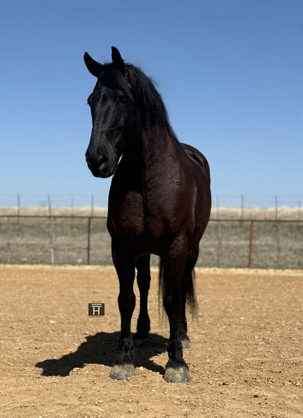 "AVAILABLE ON ONLINE HORSE AUCTION AT www DOT PlatinumEquineAuction DOT com BIDDING OPEN NOW thru SUNDAY | APRIL 5TH! *Final price will be determined on auction site* CONSIGNOR CONTACT INFO: Holland Horse Company 559-978-6320 LOCATION: Weatherford, TX Brick is a stout, well-built 9-year-old Draft Cross gelding with the kind of experience and temperament everyone is looking for. Standing 15.3 hands and weighing approximately 1500 pounds, he’s the perfect combination of size, strength, and rideability. This is a true “been there, done that” horse. Brick has logged countless miles on the trails and has been used extensively on the ranch. He will run to and pull absolutely anything. He’s equally comfortable in the arena, riding both English and Western. Nothing phases him—he’s been exposed to roads, traffic, dogs, goats, ATVs, tractors, and more. Brick is also exceptionally well broke to drive, both single and double. He has a kind, gentle nature and excellent manners. There is absolutely no buck, bolt, or silliness to him. He’s well-trained, moves easily off leg, neck reins, and carries himself with natural collection. Ask him to lope with a simple kiss and he steps right into it. He’s forward-moving yet light and responsive, with smooth, comfortable gaits from a ground-covering walk to an easy jog. When it comes to work, Brick shines. He will pull anything you hook to him and truly enjoys working hard. He’s the type that will go all day with the same willing attitude and perky eared demeanor. Brick is also versatile and athletic—we’ve started him over fences, and he’s taken to it naturally. He’s bold, confident, and not easily intimidated, making him a great prospect for fox hunting or other performance disciplines. So far, we haven’t found anything that spooks him. He is sound, healthy, straight, and clean-legged. He is the perfect size with tons of mass and not too tall to easily mount. He gets along well with other horses, stands well for the farrier, and is easy to haul and tie. For more information, contact Chanel with Holland Horse Company at 559-978-6320 (call or text). Shipping can be arranged nationwide. We are located in Weatherfod, Texas.