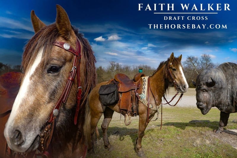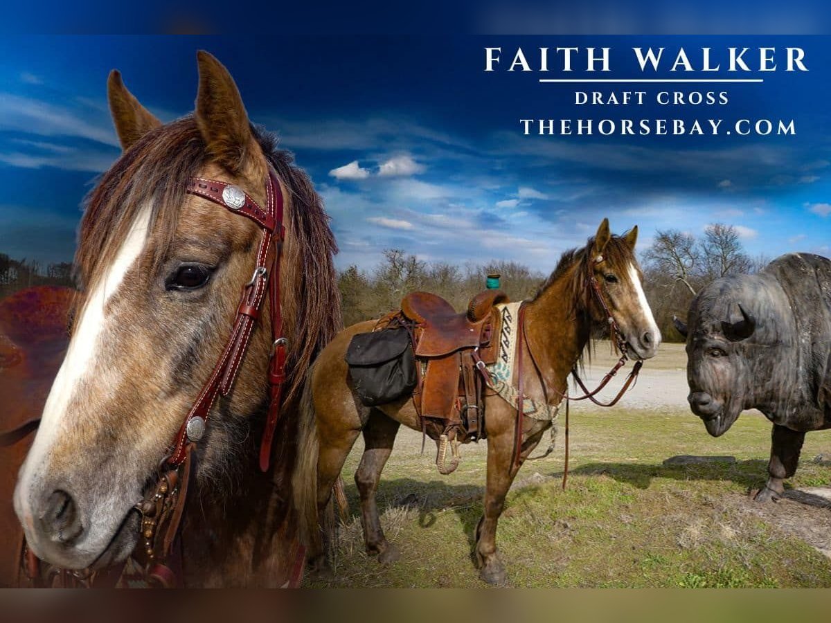Temperament: 1/10 – exceptionally calm Faith Walker is a stunning young Draft Cross mare with a rock-solid foundation and an unbeatable temperament. She is barefoot, sound on all four hooves, with clean legs, bright, clear eyes, and overall excellent health. She has passed a Pre-Purchase Exam (PPE) and has current Coggins papers. Faith is truly exceptional—extremely gentle, highly desensitized, and impressively intelligent. She’s eager to please, incredibly willing, and has that endearing “in-your-pocket” personality. Her ground manners are impeccable, and she is soft in the mouth, handy with a neck rein, and responsive to cues. She stops on a dime and backs up with ease. This mare is fearless—she goes the pace you ask for, is gun-safe, and is a dream on the trails. She confidently crosses rocks, creeks, steep hills, water, and logs with sure-footed precision. She has seen wildlife and remains calm and composed. Faith can be ridden bareback or with a saddle and is unfazed by dogs, cats, other horses, cattle, traffic, trains, ATVs, lawnmowers, and four-wheelers. She loads and unloads from a trailer with ease, and she’s a breeze to brush, bathe, saddle, unsaddle, and catch—she’ll even meet you at the gate. She stands quietly for the farrier and has no vices or bad habits. With her fearless disposition and strong foundation, Faith is ready for any direction—be it trail riding, mounted shooting, or any discipline her new rider chooses. You won’t find another draft cross mare this young, this smart, and this experienced. It has been an absolute privilege to train her, and whoever takes her home is truly getting a gem. Meet Faith in person or arrange shipping if you’re unable to travel.