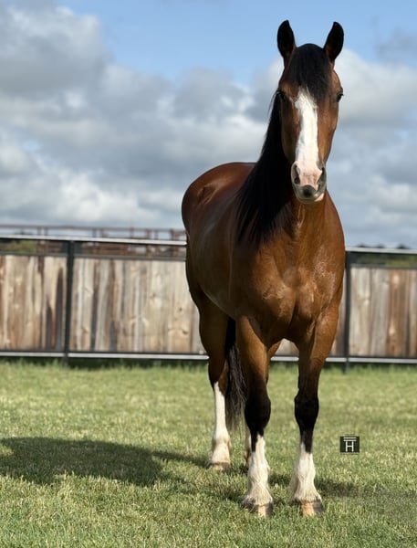 "AVAILABLE ON ONLINE HORSE AUCTION AT www DOT MagicHorseAuction DOT com BIDDING OPEN NOW thru TUESDAY | JULY 22nd - BUY IT NOW AVAILABLE! *Final price will be determined on auction site* CONSIGNOR CONTACT INFO: Chanel Holland 559-978-6320 LOCATION: Jacksboro, TX BB is a 4 year old draft cross mare with the “it” factor in all the departments. She is GENTLE, broke, SAFE, sound, and STUNNING! BB is broke both English and Western. She will ride one handed in a bridle or two handed in a snaffle. She is started over fences and would make an amazing fox hunter as she is bold, brave and forward to fences. She has been used on the ranch and doctored plenty of cattle and knows a days work. She will track, run to one, and work the rope. BB is super easy to ride and saddles up gentle every single day. She is traffic safe, not spooky or jumpy about new things, and has seen all the terrain outside and on the trails. She has good ground manners, is good with her feet, stands tied, hauls, etc. like a lady should. BB is an easy keeper, sound, straight and clean legged. This mare is absolutely beautiful and will turn heads every time someone walks by her. She is super fun and enjoyable to have around and we feel she would make absolutely anyone an amazing partner! FMI call/text Chanel 559-978-6320. We are located in Jacksboro, Texas and happy to help arrange shipping nationwide.