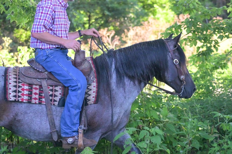 ⚜ The HERITAGE Classic ⚜ Happening now thru MONDAY | AUGUST 11th - Available EXCLUSIVELY on HorseBid's website! For more details and to register visit: www.Horsebid.com CONSIGNOR CONTACT: Yoder Family Horses 417-432-1088 LOCATION: Harwood, MO BREED: Draft Cross REGISTERED: No COLOR: Blue Roan HEIGHT: 15.1 AGE: 5 GENDER: Mare Wow! Here is a blue roan crossbred that checks all of the boxes. Candi is the perfect size at 15.1h. She is the right age, well broke, and is super quiet and gentle. This mare is special to us because she was born and raised on our farm. Candi was sired by our blue Percheron-Brabant draft stallion and out of our favorite quarter mare. She has always been, in your pocket, gentle from day one! Candi has been ridden lots and lots of miles on trails, on the road, and in the arena. She has been exposed to traffic, dogs, tarps, cattle, small livestock, and various trail obstacles. Candi always stays quiet and confident in challenging situations. She has also been used under harness on the farm and has no problem with that. Candi is eligible to be registered with the International Draft & Sport Horse Registry; we are happy to give you all of the information needed to have her registry completed. She sells 100% sound in every way. Candi has been ridden by kids and inexperienced riders, always taking the best care of her rider. For more information about Candi, or to schedule a time to meet her prior to the auction ending, please call us at 417-432-1088.
