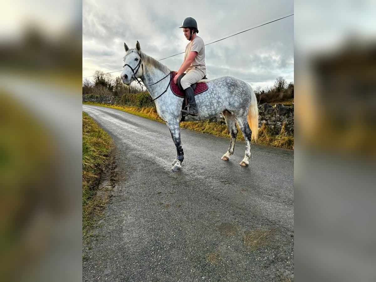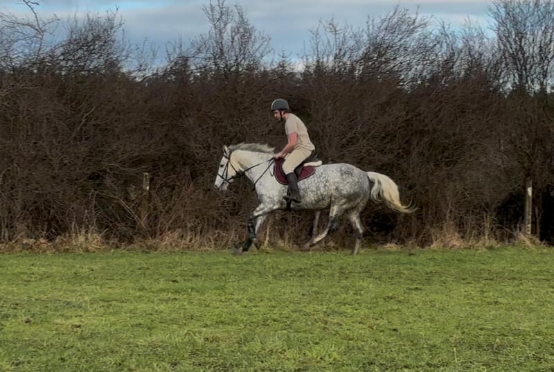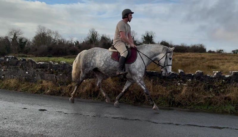 Grace is a 6yo Irish Draught type mare 165cm (16,1hh). She is a beautiful, dapple grey mare and has a lovely full bodied model. Very kind and steady temperament. She is riding quietly and doing the basics very well. Hacks out excellent, alone or in company. Good in all types of traffic and is not phased by different circumstances. She rides quietly through her paces and has schooled over small jumps , both in the school and in x country training. She is a lovely allrounder / hobby horse type and will make someone very happy. Equally sweet in all handling and a pleasure to have in the stable. Price €6,000 Located in Sligo, Ireland. Regular professional transport available if required. For further information or videos please contact Edward on 00353871412129. All enquiries welcome!