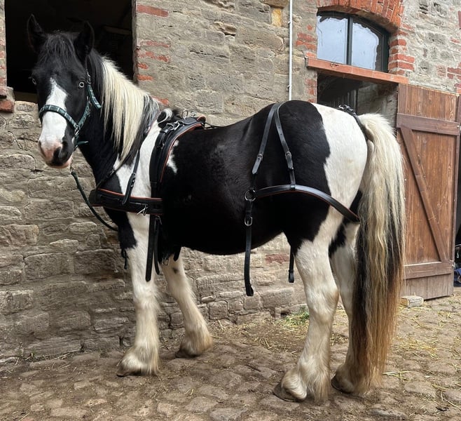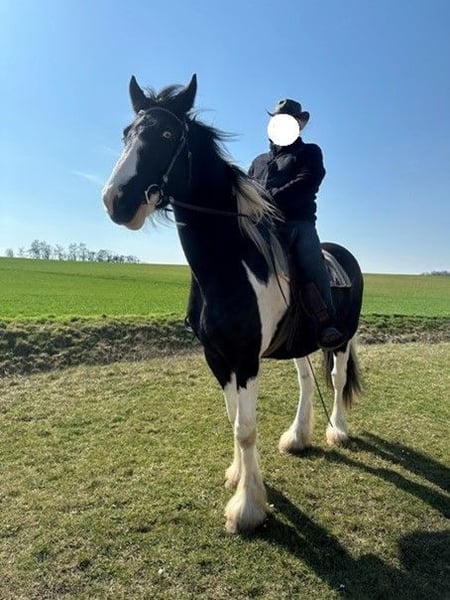 Schweren Herzens steht dieses beeindruckende Drum Horse, geboren im Jahr 2022, zum Verkauf. Mit seinen 4 Jahren befindet es sich in einem idealen Alter, um weiter gefördert zu werden und eine enge Bindung zu seinem neuen Besitzer aufzubauen. Dieses besondere Pferd begeistert nicht nur durch seine imposante Erscheinung, sondern vor allem durch seinen ausgeglichenen, freundlichen und lernwilligen Charakter. Es wurde frisch und solide zum Kutschpferd ausgebildet und zeigt sich dabei zuverlässig, aufmerksam und absolut nervenstark im Geschirr. Auch unter dem Sattel macht es eine sehr gute Figur: Es kennt die Grundlagen, arbeitet motiviert mit und entwickelt sich stetig weiter. Ein echtes Nachwuchspferd mit viel Potenzial – sowohl für den Fahr- als auch für den Reitsport. Abgegeben wird inklusive Zubehör, darunter ein Westernsattel sowie ein einspänniges Kutschgeschirr. Passende Kutschen stehen ebenfalls zum Verkauf und können bei Interesse zusätzlich erworben werden. Wichtig ist mir, dass dieses besondere Pferd in gute und passende Hände kommt. Daher möchten ich vor dem endgültigen Verkauf gerne den neuen Stall bzw. das zukünftige Zuhause kennenlernen. Bei ernsthaftem Interesse freuen wir uns über eine Nachricht und ein persönliches Kennenlernen.