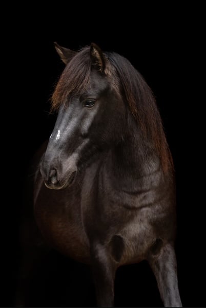 Dülmener Wildpferd in dunkler Jacke
