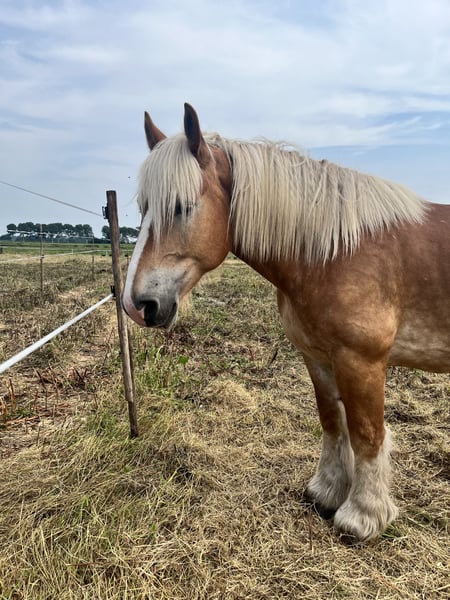 Hello everyone, It is with a heavy heart that we are looking for a new five-star home for our Albert. Our daughter has a long-term injury and is currently unable to ride much... We notice that Albert has more potential and willingness, and he truly deserves to be challenged. Albert is 6 years old and approximately 16.1 hh (not officially measured). He needs more stimulation than he currently receives. Albert is well-trained and well-behaved under saddle, and he remains calm and unbothered during outdoor rides. We want him to find someone who will enjoy working with him. Albert is not a horse to be kept in a stable; he is used to being outside 24/7. With his temperament, he would also be suitable for starting driving training – the possibilities are endless. If you fall in love with him instantly and can give our gentle giant what he needs, please don’t hesitate to contact us. More photos and videos available upon request. Please message us at: 0622736406 Kind regards