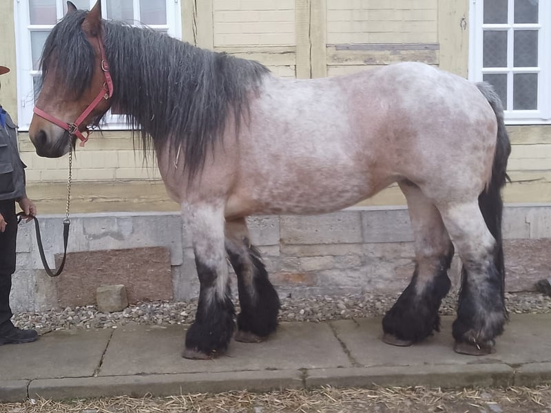 7-year-old Cold Blood mare, Dutch Draft Horse with an excellent pedigree, chestnut with flaxen mane and tail, 1.65 m tall, well-trained and successfully used for breeding. She is now seeking a new activity or purpose. Her yearling colt by Albrecht von Schernikau, a Rheinisch-Deutsches Kaltblut from 2025, is also a purebred Cold Blood. He is halter-trained, familiar with handling and the foal ABC, can lift his feet and be led daily without issues. He is also available for sale. Both horses are very people-oriented. €1,300 for the colt. Please contact only by phone; emails cannot be answered due to time constraints. Repeated attempts may be necessary. Mobile: 01706701756