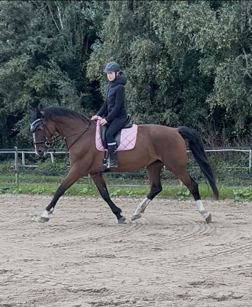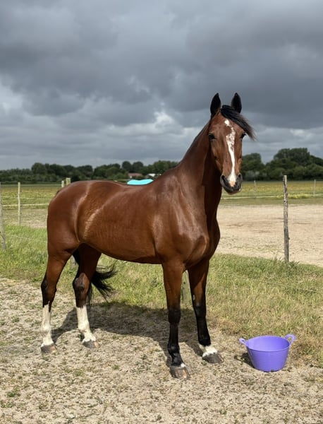 Star Mare Giliena van het Rodeland – Seeks a New Loving Home It is with a heavy heart that I have decided to find a new home for Giliena van het Rodeland, my 14-year-old KWPN harness horse mare with star predicate, standing at 1.64 meters. Giliena is a willing and energetic mare with a lot of presence and a beautiful build. She is healthy, regularly vaccinated, well cared for, calm at the farrier, and easy to load onto the trailer. Her previous owners used her for carriage driving and took her out regularly, both alone and in groups. We have not done this ourselves, as we do not drive with a carriage and lack outdoor riding opportunities. When she finds something a bit scary, she can become tense, but with proper guidance and a calm, consistent rider, she relaxes well. She needs someone who can guide her with confidence and clarity. Currently, Giliena is turned out 24/7 and stays in a stable at night during the winter. Both situations work well; she shows no stable vices. She is kept in a group with three other mares, which also goes smoothly. Due to my own insecurities, we have not been the right match, and I hope to find a rider who can further guide her and work with her. Details: • Age: 14 years • Predicate: Star • Health: Healthy, regularly vaccinated and well cared for • Trailer: Calm and easy • Farrier: Calm and cooperative • Accessories: Possible upon discussion (custom saddle, bridle, etc.) • Location: Zwaanshoek Clinically examined in May 2025, inspections are of course possible. She goes only to a good home where time, patience, and experience are present. No trade. If interested, please send a message.