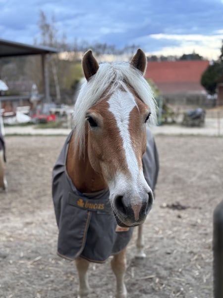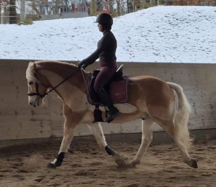 Freizeitgerittener 14 Jähriger Edelblut Haflinger, ca 155cm Stockmaß Sucht nachweislich neues 5* zuhause auf Lebenszeit. Der Wallach besticht mit seinem Charme im Umgang, ist sehr Menschenbezogen und freundlich gegenüber Artgenossen. Er steht aktuell in einer gemischten Herde im Offenstall : im Sommer 24/7 Weidegang und im Winter Sandpaddock mit Heu satt - dabei immer Zaunsicher, kennt aber auch Box. Er ist auf solidem A Niveau im Freizeitbereich geritten wurde eher Dressurmäßig gearbeitet, hat aber aber auch sehr viel Spaß an gymnastizierender Stangenarbeit und kleinen Sprüngen. Er geht allein und in der Gruppe ins Gelände und ist dabei auch sehr brav und verlässlich, möchte immer vorne weg und ist sehr mutig . Sein Alter merkt man ihm nicht an, daher ist er nicht für Anfänger oder unsichere Reiter geeignet, da er sehr gern seinen Ponykopf durchsetzen möchte. Aktuell ist er 4x beschlagen, dazu mehr bei ernsthaftem Interesse. Für weitere Infos und Rückfragen stehe ich gern zur Verfügung. Videos können versendet werden.
