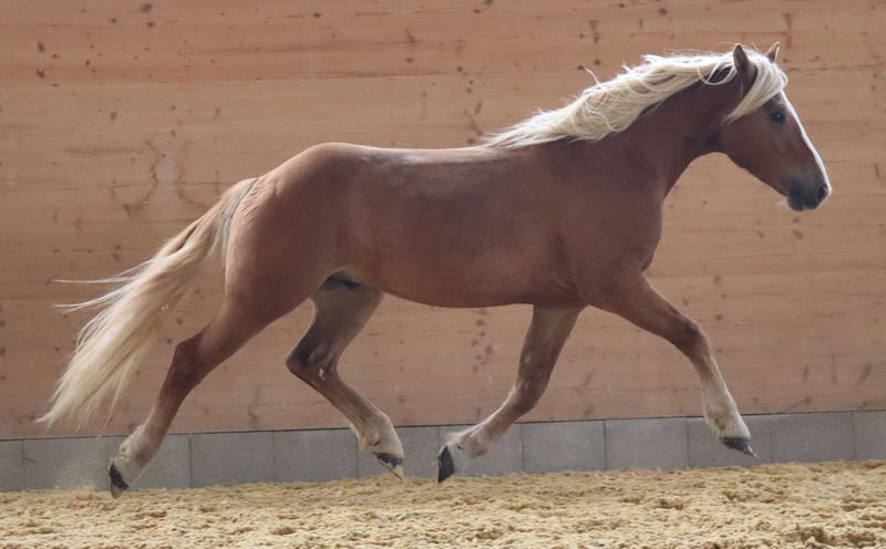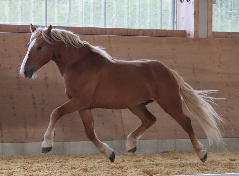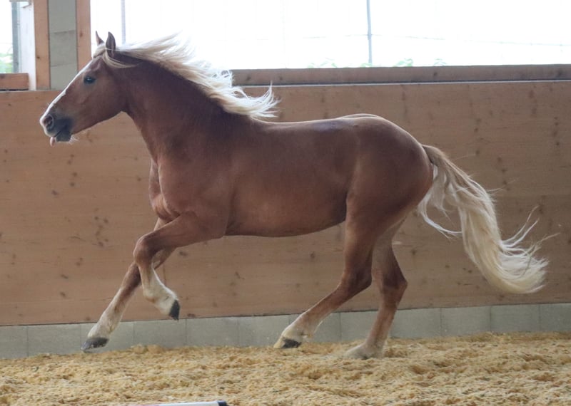 🌟 Sacramentos – sportlicher Edelbluthaflinger aus erfolgreicher Leistungslinie Sacramentos ist ein wohlerzogener, bewegungsstarker und in sich ruhender 2-jähriger Edelbluthaflingerwallach, der durch seine elastischen Bewegungen, seinen klaren Kopf und seine natürliche Sportlichkeit überzeugt. Er stammt ab von E/BP DSP Salvator, einem der erfolgreichsten und vielseitigsten Edelbluthaflingerhengste Deutschlands. Salvator verbindet Typ, Rittigkeit und Leistung wie kaum ein anderer und prägt seine Nachzucht mit Charakter und Sportlichkeit. 🏆 Erfolge von E/BP DSP Salvator: Sieger der Hengstleistungsprüfung Warendorf mit 8,36 Bundesprämienhengst & Bundesreservesieger Fahren (2019) Elitehengst (2022) – erster fränkisch gezogener Edelbluthaflinger mit diesem Titel Sportpräfix DSP (2023) für seine Eigenleistung Zahlreiche Siege und Platzierungen bis L-Dressur und im Fahrsport bis Klasse M Mehrfacher Champion und Sieger bei den Internationalen Haflingermeisterschaften Führend in FN- und Bayerischen Sportauswertungen mit Top-Platzierungen unter Deutschlands besten Dressur- und Fahrhaflingern 🌟 Leistungsstarke Nachzucht: Stellt mehrfache Leistungsprüfungssiegerinnen und Staatsprämienstuten Vater der Championesse des Süddeutschen Fohlenchampionats Nachkommen siegreich auf Bundeschampionaten und Haflingermeisterschaften Stellt deutsche Championessen im Fahren und in der Dressur Seine Nachzucht überzeugt durch Rittigkeit, Arbeitsfreude und Charakterstärke 🐴 Über Sacramentos: Sacramentos wächst artgerecht im Herdenverband auf, genießt den Sommer auf weitläufigen Weiden und den Winter im Laufstall mit täglichem Koppelgang. Im Umgang zeigt er sich stets brav, neugierig und zuverlässig. Putzen, waschen, anbinden, führen und Hufe geben beherrscht er souverän. ✨ Kurzinfos: 2-jähriger Edelbluthaflingerwallach Abstammung: E/BP DSP Salvator Bewegungsstark, sportlich und menschenbezogen Artgerechte Aufzucht im Herdenverband Sicher im täglichen Umgang Sommer auf der Weide, Winter im Laufstall mit täglichem Koppelgang Sacramentos überzeugt mit sportlicher Perspektive, erstklassiger Abstammung und vielversprechendem Interieur – ein Edelbluthaflinger, der für die Zukunft im Viereck oder Freizeitbereich alles mitbringt.