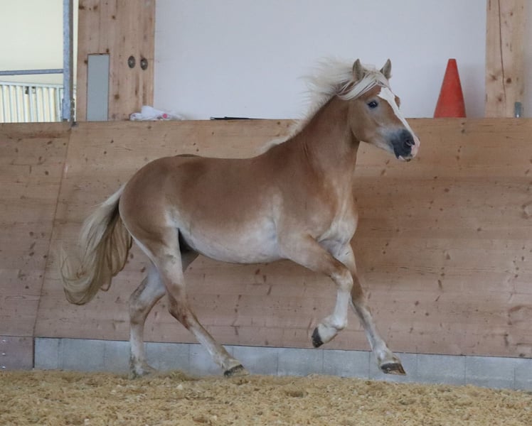 Bruce – Young Edelbluthaflinger Gelding with Excellent Pedigree & Promising Future Born on April 16, 2023, Bruce presents as a well-mannered, typy Edelbluthaflinger gelding standing approximately 147 cm at the moment. He has been raised appropriately in a herd environment and enjoys summers on spacious pastures as well as winters with his friends in a box stall with all-day turnout – ideal conditions for healthy and balanced development. 🧹 Handling & Basic Training Bruce is familiar with and confidently masters all foal basics: grooming, washing, leading, tying, and hoof handling are performed calmly and reliably. He impresses with his calm and pleasant demeanor in daily handling. 🧬 Outstanding Pedigree Sire: LH Barion – Reserve Champion Stallion at the South German licensing 2021 – Reserve winner of the stallion performance test with a score of 8.46 – Produces numerous champion foals Dam: SP Gabi (by Amaryl out of Greti by Aggenstein) Full sister: – Outstanding winner of Edelbluthaflinger mare class at the regional foal championship This exceptional lineage and family success story give Bruce an excellent foundation and great sporting potential. ⚡ Special Features Bruce can be delivered to his new home upon request and at the buyer’s expense. 🎯 Prospect Bruce is ideally suited for breeders and ambitious leisure or young riders who value a healthy, well-socialized young horse with an excellent character and noble pedigree.