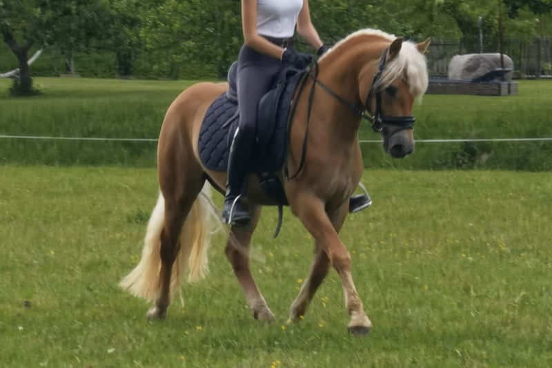 Dieser bildschöne, bewegungsstarker, Anfang März geborene Edelbluthaflingerwallach (ox 9,9%) ist für alles offen. Er hatte 2 schöne Alm Jahre in einer Junghengst Erde und ist mit 2,5 Jahren gelegt worden. Zähne sind kontrolliert und Wolfszähne entfernt. Er ist professionell angeritten und hat eine PSSM1 1 freie Abstammung. Sein derzeitiges Stockmass ist 146 cm, somit bleibt er im Ponymass. Tetanus, Influenza und Herpes geimpft. Sein Vater ist der Elitehengst Bundesprämienhengst Schampus. Reservesieger der Körnung 2016 und der Hengstleistungsprüfungsieger 2018 mit der Endnote 8,42 Interieur 8,83 Reiten 8,18 Fahren 8,55. Sein Vollbruder ist der springbetonter Bundesprämiensiegerhengst Secco 2023 in Münster. 2020 wurde er in München gekört und 2022 ging er in Moritzburg als Sieger der Edelbluthaflinger mit einer Endnote von 8,56 hervor. Interieur 8,61 Reiten 8,42 Fahren 8,80. Die Mutter ist die Leistungsprüfungsiegerin 2016 auf Station in München mit 8,03. Der Mutter water ist kein Geringerer als der Elitehengst, fahrbetonter Bundesprämiensiegerhengst DSP Nakuri.