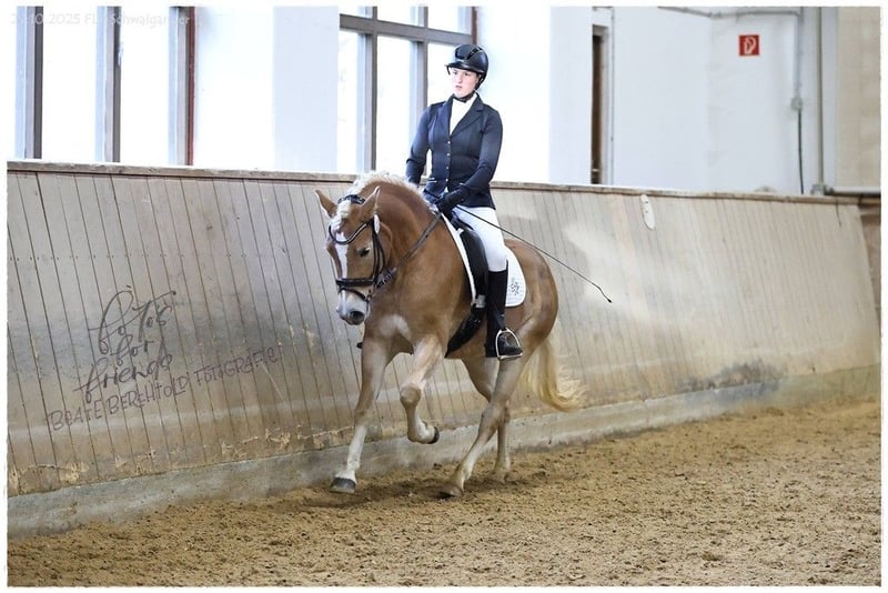 Edelbluthaflingerstute „Cora“ – talentiert, rittig und charakterstark Unsere bezaubernde Edelbluthaflingerstute Cora, geboren am 31.05.2022, sucht ein neues Zuhause, in dem ihr Talent und ihr ausgeglichener Charakter geschätzt und gefördert werden. Cora stammt aus eigener Zucht – sowohl Vater als auch Mutter stehen bei uns im Stall und werden erfolgreich im Sport eingesetzt. Beide Elterntiere überzeugen durch Leistungsbereitschaft, Nervenstärke und Vielseitigkeit – Qualitäten, die sie an Cora weitergegeben haben. Die hübsche Fuchsstute ist bereits geritten, geländesicher und zeigt sich auch in der Dressurarbeit sehr rittig und motiviert. Sie möchte ihrem Reiter stets gefallen und arbeitet zuverlässig mit. Im täglichen Umgang ist Cora eine liebenswerte, charakterstarke Stute, die immer den Kontakt zum Menschen sucht. Ihre Eigenleistungsprüfung in Schwaiganger absolvierte Cora mit großem Erfolg. Dort zeigte sie ihre hervorragenden Anlagen sowohl unter dem Reiter als auch im Freispringen. Cora eignet sich ideal für ambitionierte Freizeitreiter ebenso wie für den Sport oder einfach als Familienpferd das jeden Lieb hat. Ein echtes Allround-Talent mit Herz und Verstand!