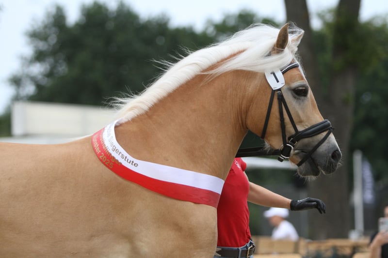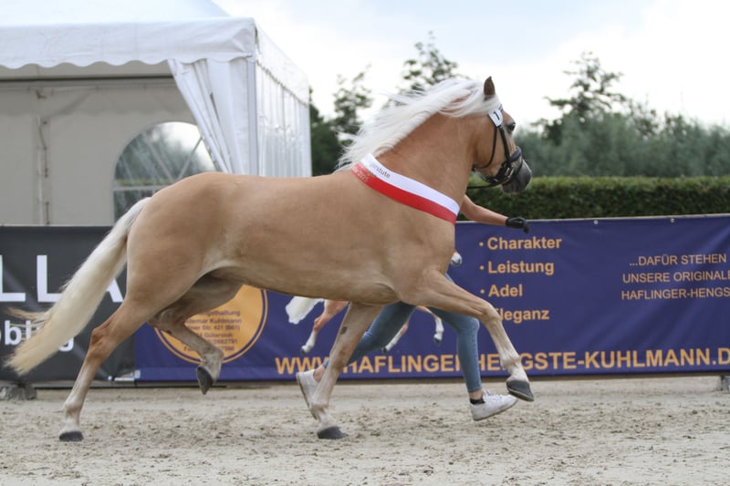 Zum Verkauf steht Staatsprämienstute Stella, die Siegerstute der Edelbluthalfinger der Eliteschau 2025 in Münster-Handorf. Die 4-jährige Stute v. Strippoker a. d., StPrSt. Helinda v. Süddt. Prämienhengst Navy blue – Aquarell, mit einem derzeitigen Stockmaß von 1,44 m, konnte schon 2021 als Fohlen auf dem Norddeutschen Fohlenchampionat, ebenfalls in Münster-Handorf, überzeugen und belegte auch dort den 1. Platz. Stella wurde im Frühjahr schonend an Longe und Reitergewicht gewöhnt und war vor ihrer Stutenleistungsprüfung 4 Wochen in Beritt beim Westfälischen Pferdezentrum/Münster. Sie legte am 24.07.2025 ihre Stutenleistungsprüfung mit 7,85 ab. Sie hat eine sehr hübsche Aufmachung und einen tollen Körperbau und ist mit drei sehr guten Grundgarten ausgestattet. Auch ihr Interieur lässt keine Wünsche offen. Sie ist im täglichen Umgang eine sehr liebe und menschenbezogene Stute. Sie lässt sich gerne ohne Probleme waschen, absaugen, trockenfönen und lange striegeln. Sie ist auch brav beim Schmied, Tierarzt und beim Verladen. Altersbedingt muss sie natürlich noch viel lernen und Routine bekommen, aber sie ist immer händelbar und arbeitswillig. Sie ist keine Schlaftablette und muss reiterlich noch weiter gefördert werden (derzeit noch nicht für Anfänger geeignet). Da uns dies zeitlich nicht möglich ist und der Bestand altersbedingt vom Züchter, reduziert werden muss, steht diese tolle Stute zum Verkauf. Sie ist nach weiterer Ausbildung sicherlich für viele Sparten geeignet (Dressur, Springen, Vielseitigkeit, Fahren, Zucht). Sie könnte natürlich auch direkt in die Zucht einsteigen, um ihre tollen Eigenschaften weiterzuvererben. Ihre Mutter Helinda, ebenfalls Staatsprämienstute und SLP mit 8,38 abgelegt in Bayern, hatte 2019 noch eine weitere Staatsprämientochter, Nala v. Nachtstolz. Helinda und Nala sind beide geritten und zweispännig gefahren und ebenfalls sehr umgänglich. Stella steht derzeit tagsüber im Offenstall zusammen mit ihrer Mutter, Halbschwester und einem alten Wallach, und kommt stundenweise auf die Wiese. Sie kennt auch Boxenhaltung und bekommt täglich in der Box ihr Kraft- u. Mineralfutter. Der Schmied war regelmäßig da. Sie war während des Beritts und der Schauen in Münster vorne beschlagen, läuft aber aktuell wieder ohne Probleme barhuf. Wir wünschen uns ein gutes Zuhause für Stella, wo sie weiter gefördert wird und viel Zuwendung bekommt. Ein Kennenlernen, Vorreiten, Probereiten ist nach Terminabsprache möglich. Melden sie sich gerne.