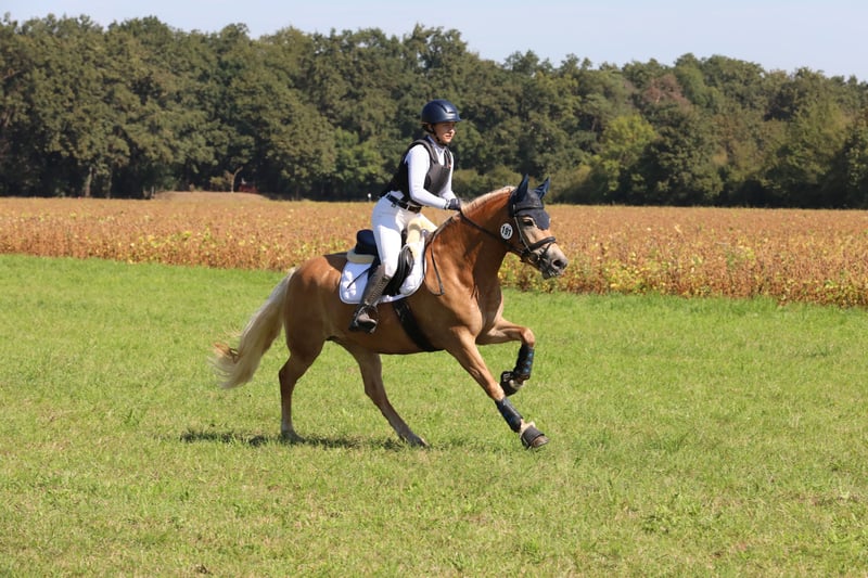 Maleika ist eine typvolle Edelbluthaflingerstute (7,422%) mit sehr gutem Bewegungs- sowie Sprungablauf und herzlichem Charakter. Die Stute überzeugt durch ihre Leistungsbereitschaft, ihren Charme und ihre vielseitige Einsetzbarkeit. Sie ist sowohl für den Sport als auch für den Freizeitbereich interessant und bringt zudem beste Voraussetzungen für die Zucht mit. Im Umgang ist sie brav, menschenbezogen und freut sich über jegliche Aufmerksamkeit. Sie ist ein echter Goldschatz - immer lieb und bemüht, egal ob auf dem Platz, in der Halle oder im Gelände! Maleika ist eingetragen ins Stutbuch I und hat ihre Stutenleistungsprüfung in München-Riem mit der Endnote 8,08 gewonnen. Am Turnier ist sie mehrfach gegen Großpferde Geländepferde E platziert mit Noten bis 8,2 und Geländepferde A gestartet. Außerdem ist sie Springpferde A platziert und Dressurpferde A gelaufen. Sie verdient ein 5-Sterne-Zuhause und wird nur aufgrund von Wegzug der Reiterin verkauft. Weitere Informationen und Videos senden wir gerne auf Anfrage. (Auch per WhatsApp unter 0172-8196797) Probereiten bei ernsthaftem Interesse nach Terminvereinbarung möglich.