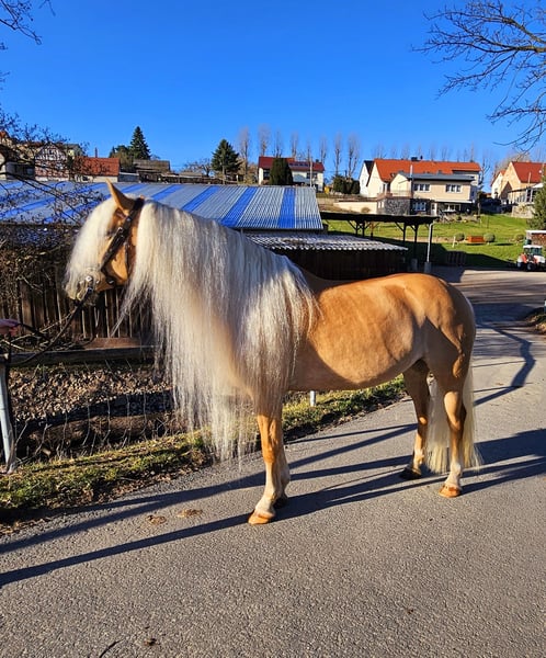 Zum Verkauf steht die außergewöhnliche Edelbluthaflinger Stute „Bandura“, 8 Jahre alt – ein Pferd, das in der Kombination aus Sporterfolg, Charakter, Optik und Zuchtqualität nur äußerst selten zu finden ist. Mit einem Stockmaß von 1,53 m bringt sie die ideale Größe mit, um auch größere Reiter sehr gut abzudecken, bleibt dabei aber absolut unkompliziert und auch von Kindern sicher zu händeln. Ihr ausgeglichener, freundlicher Charakter sowie ihre Menschenbezogenheit machen sie im täglichen Umgang zu einem echten Verlasspferd. Optisch begeistert sie mit ihrer extrem langen, dichten Mähne und ihrem typvollen, ausdrucksstarken Erscheinungsbild. Bandura ist kerngesund, war noch nie krank, regelmäßig geimpft und ostheopathisch behandelt. Sie zeigt sich in allen Bereichen absolut zuverlässig. Sie ist selbstverständlich verlade- und schmiedefromm und überzeugt durch ihre ruhige, kooperative Art – sowohl im täglichen Training als auch im Umgang. Sie konnte auf Turnieren zahlreiche A- und Dressurpferde L Platzierungen erzielen, darunter mehrfach Siege mit konstanten 8er-Noten, was ihre Qualität und Rittigkeit eindrucksvoll unterstreicht. Besonders hervorzuheben sind ihre zwei Siege in den Nürnberger Burkpokal Qualifikationen 2025 für die Thüringer Junioren. Zudem wurde sie auf mehreren Veranstaltungen vorgestellt, wie zum Beispiel die Messe Reiten Jagen Fischen, auch da zeigte die sich immer ruhig und händelbar. Auch im Springen zeigt Bandura viel Vermögen und Übersicht und absolviert einen A*/ A**-Parcour souverän und sicher. Im Gelände präsentiert sie sich absolut geländesicher, nervenstark und motiviert, wobei sie insbesondere an Geländesprüngen große Freude hat. Damit ist sie ein vielseitig einsetzbarer Allrounder für ambitionierte Reiter, die gerne auf Turnieren starten wollen. Züchterisch ist sie ebenfalls hochinteressant: Als Staatsprämienstute und Teilnehmerin der Elitestutenschau bringt sie beste Voraussetzungen in Abstammung, Exterieur und Bewegung mit. Zudem hat sie bereits ein Fohlen zur Welt gebracht, wodurch sie ihre Zuchtqualität auch praktisch unter Beweis gestellt hat und sich sowohl für den weiteren Sporteinsatz als auch für die Zucht gleichermaßen empfiehlt. Unter dem Reiter zeigt sie sich jederzeit leistungsbereit, ehrlich und angenehm zu sitzen.Sie zeigt lediglich eine bekannte, leichte Eigenheit, bei der sie gelegentlich die Zunge einrollt oder kurz herausstreckt, sie jedoch in keiner Weise in Rittigkeit, Anlehnung oder Leistungsfähigkeit beeinflusst – was sich auch deutlich in ihren sportlichen Erfolgen widerspiegelt. Der Verkauf erfolgt ausschließlich aus persönlichen Gründen, da ich ab diesem Sommer ein Studium beginne und dadurch nicht mehr ausreichend Zeit für zwei Pferde aufbringen kann, um diese optimal zu fördern. Die Abgabe fällt entsprechend schwer, daher wird Bandura nur in beste und fördernde Hände abgegeben. Weitere Videos oder Infos über WhatsApp 01738006772