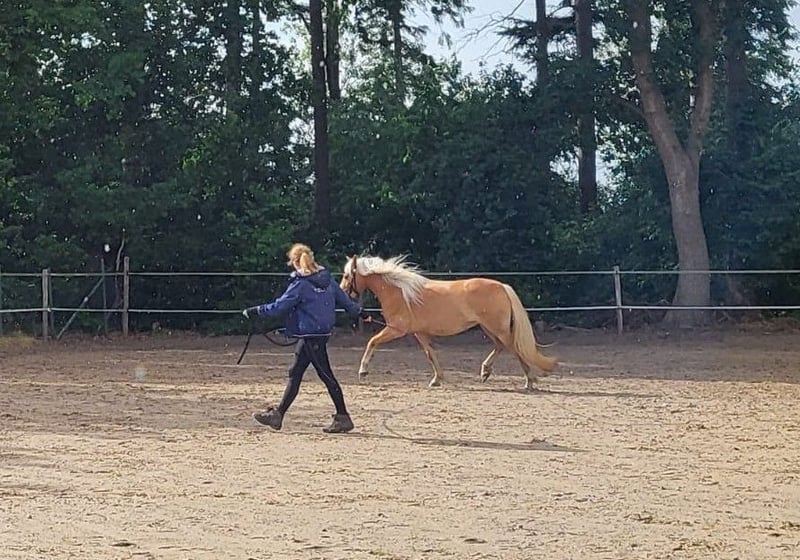 Hallo, leider muss ich mich von meiner knapp neun-jährigen (Edelblut-)Haflingerstute Pauline trennen, da ich in den nächsten Jahren weder die finanziellen Mittel zur Verfügung haben werde, noch ihr zeitlich gerecht werden kann. Diese Entscheidung fällt mir wirklich schwer, allerdings kann ich ihr bereits seit längerem, und nun einmal voraussichtlich auch noch längerfristig, nichtmehr gerecht werden und muss diese Entscheidung daher in ihrem Sinne treffen. Zu ihr: Sie ist eine sehr lernwillige, motivierte und unerschrockene Stute - gleichzeitig aber auch dominant und hat in einigen Situationen definitiv eine geringe Frustrationstoleranz (bleibt mir gegenüber dabei aber grundsätzlich aufmerksam), wodurch sie nicht für Anfänger*innen/ Wiedereinsteiger*innen geeignet ist. Zu Beginn testet sie ihre Grenzen sehr gerne, allerdings ist sie, sobald man ihr Vertrauen gewonnen hat, sehr loyal und möchte gefallen. Sie hat viel Energie und möchte entsprechend abwechslungsreich beschäftigt werden. Ausbildung: Aufgrund einer im Herbst 2024 diagnostizierten lateralen Fesselträgerursprungsdesmopatie VL mussten wir für ein gutes halbes Jahr pausieren. Mittlerweile darf/ soll sie laut der Klinik wieder voll gearbeitet und auch bedingt geritten werden - allerdings fällt es mir seither sehr schwer, sie normal zu arbeiten, ohne mir neue Probleme "vorzustellen"/ einzubilden. Somit wurde sie im letzten Jahr nur unregelmäßig geritten. Durch ihre lange Pause fehlt ihr natürlich weiterhin einiges an Kraft und Balance, weswegen sie vor vermehrtem reiten verstärkt antrainiert werden müsste - hierbei sollte selbstverständlich weiterhin ein Blick auf ihren aktuellen Zustand geworfen werden. Des weiteren kennt sie longieren, Ansätze der Doppellonge und klassischen Handarbeit, leichte Zirzensik in der Freiarbeit und geht alleine ins Gelände. Grundsätzlich sehe ich sie als Freizeit-/ Geländepferd und hatte immer den Traum, irgendwann mit ihr in die Working-Equitation zu schnuppern - unsere bisherigen Schnuppereinheiten auf einem kleinen Trail-Platz haben mit ihr immer viel Spaß gemacht! Auch das Einfahren könnte ich mir aufgrund ihres selbstbewussten und neugierigen Charakters prinzipiell vorstellen. Hier nocheinmal zusammengefasst die groben Eckdaten zu ihrer Gesundheit: - ausgeheilte laterale Fesselträgerursprungdesmopathie VL - pausenbedingte Steifheit/ anfängliche Arthrose in den Sprunggelenken - Fehlstellung in der Hinterhand (bereits von Fohlenalter an, entsprechend im Alltag kein Problem) - Barhufer - regelmäßig geimpft und entwurmt - regelmäßige Zahnkontrolle - brav bei Tierarzt und Hufbearbeitung Ich wünsche ihr ein neues Zuhause, in welchem sie in einer ruhigen Herde viel draußen steht (gerne im Offenstall, gemischte Herde möglich) und eine*n Besitzer*in hat, der ihr die volle Aufmerksamkeit schenken kann, um mit ihr gemeinsam Neues zu lernen und ihr endlich wieder eine Aufgabe zu geben. Sie ist eine Partnerin für die erfahrene Pferdemenschen, die ein charakterstarkes Pferd suchen – ehrlich, sensibel, arbeitswillig und mit Ecken und Kanten, die es nie langweilig werden lassen - , ohne vor der Krankheitsgeschichte zurückzuschrecken. Je nachdem wie deine aktuelle Situation aussieht, besteht gegebenenfalls die Möglichkeit einer Vermittlung zur Verfügung. Hierbei kann eine spätere Übernahme offengehalten werden, allerdings müssten sämtliche Kosten von dir getragen werden. Die genauen Rahmenbedingungen müssten dann natürlich individuell geklärt werden. Solltest du eher an einem Verkauf interessiert sein, können wir auch diese Alternative gerne besprechen! Wenn ich dein Interesse geweckt habe, freue ich mich über Nachrichten und erzähle gerne noch mehr!