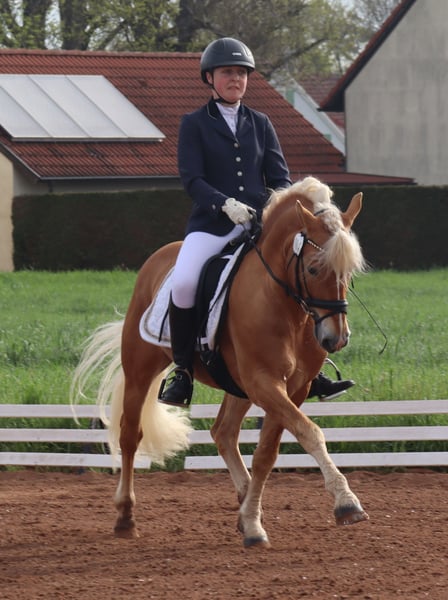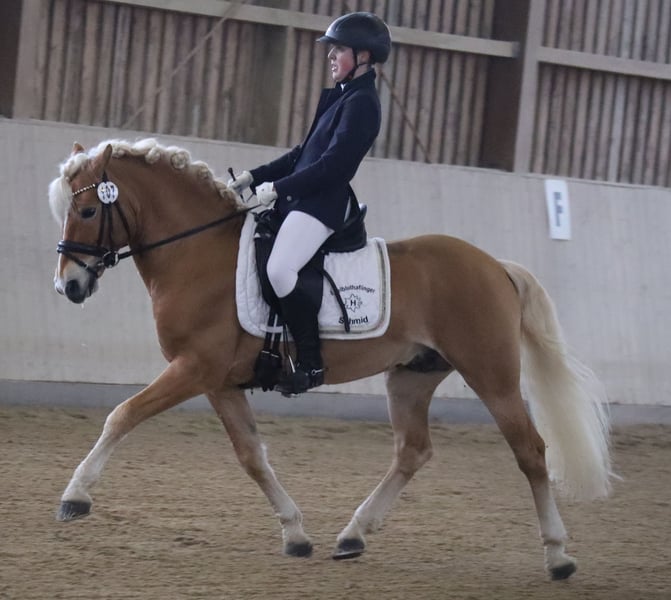 Hembra de élite y premio federal Salvator SCH – Caballo de sangre pura de gran versatilidad con destacados éxitos en deporte y cría Se ofrece en venta el excepcional caballo de sangre pura Haflinger de gran nobleza Salvator SCH, nacido el 26 de mayo de 2012, con una elegante altura de 145 cm y un llamativo color alazán. Con un porcentaje de sangre árabe del 5,273 % y libre de PSSM1 (n/n), combina una noble ascendencia con una salud excelente. Aspectos destacados en cría: 2012: Potro vencedor en la selección regional de potros en Cottenbach 2012: Participación exitosa en el Campeonato de Potros Haflinger y de sangre pura de Alemania del Sur en Múnich 2014: Inspección de cría de Haflinger y de sangre pura del sur de Alemania en Múnich – aprobado en la región sur alemana 2016: Subcampeón en la categoría de clases en la Feria Central Agrícola de Múnich 2016: Ganador en la prueba de rendimiento de sementales en Warendorf con una puntuación de 8,36 2019: Subcampeón federal en enganche y premiado con la Prueba Federal de Cría en la exposición de sementales en Múnich 2022: Otorgamiento del título de «Semental de élite» – primer Haflinger / sangre pura de origen fráncico en recibir este título 2023: Concesión del prefijo deportivo DSP por su sobresaliente rendimiento propio Éxitos deportivos: Campeón alemán de ponis de enganche para ponis de 6 y 7 años Numerosas victorias y clasificaciones hasta la categoría L** en doma clásica (bocado) Logros en salto y concurso completo Carácter y trato: Salvator es un compañero sumamente obediente y confiable, tanto en el manejo como bajo la silla. Disfruta mucho siendo cepillado y cuidado, mostrando siempre un carácter muy cariñoso y cercano a las personas. Su temperamento agradable lo convierte en un excelente caballo de ocio y deporte, con el que también se puede disfrutar tranquilamente en el campo. Información adicional: Salvator SCH se entrega exclusivamente a un hogar amoroso de cinco estrellas, donde la diversión y el disfrute de su compañía sean la prioridad, y no solo la búsqueda de resultados deportivos. Salvator SCH es un semental con un potencial excepcional para cría y deporte, que destaca tanto por sus logros como por su carácter. ¡Aproveche la oportunidad de incorporar a su equipo un semental de élite con talentos versátiles y un temperamento excelente! Para más información, fotos o videos, no dude en contactarnos en cualquier momento.