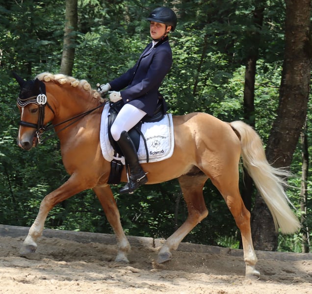 Elite- und Bundesprämienhengst Salvator SCH – Vielseitiger Edelbluthaflinger mit Top-Erfolgen in Sport & Zucht Zum Verkauf steht der außergewöhnliche Edelbluthaflingerhengst Salvator SCH, geboren am 26.05.2012, mit einem eleganten Stockmaß von 145 cm und einem auffälligen Fuchsfarbton. Mit einem Araberblutanteil von 5,273 % und PSSM1-Freiheit (n/n) verbindet er edle Abstammung mit bester Gesundheit. Züchterische Highlights: 2012: Siegerfohlen bei der regionalen Fohlenprämierung in Cottenbach 2012: Erfolgreiche Teilnahme am Süddeutschen Haflinger- und Edelbluthaflingerfohlenchampionat in München 2014: Süddeutscher Haflinger- und Edelbluthaflingerkörung in München – süddeutsch gekört 2016: Klassenreservesieger beim Zentralen Landwirtschaftsfest München 2016: Sieger Hengstleistungsprüfung Warendorf mit 8,36 2019: Bundesreservesieger Fahren und Verleihung der Bundesprämie Zucht bei der Bundeshengstschau München 2022: Verleihung des Titels „Elitehengst“ – erster Fränkisch gezogener Haflinger-/Edelbluthaflingerhengst mit diesem Titel 2023: Verleihung des Sportpräfix DSP aufgrund seiner herausragenden Eigenleistung Sportliche Erfolge: Deutscher Fahrponychampion der 6- und 7-jährigen Fahrponys Zahlreiche Siege und Platzierungen bis L**-Dressur (Kandare) Erfolge im Springen und in der Vielseitigkeit Charakter & Umgang: Salvator ist ein absolut braver, zuverlässiger Partner – sowohl im Umgang als auch unter dem Sattel. Er genießt es sehr, geputzt und betüttelt zu werden, zeigt sich dabei sehr liebevoll und menschenbezogen. Sein angenehmes Wesen macht ihn zu einem tollen Freizeit- und Sportpferd, mit dem man auch im Gelände entspannt die Seele baumeln lassen kann. Besonderer Hinweis: Salvator SCH wird ausschließlich in ein liebevolles 5-Sterne-Zuhause abgegeben, in dem der Spaß und die Freude im Umgang mit ihm im Vordergrund stehen – nicht der reine sportliche Ehrgeiz. Salvator SCH ist ein Hengst mit herausragendem Potenzial für Zucht und Sport, der sowohl durch seine Erfolge als auch durch seinen Charakter überzeugt. Nutzen Sie die Chance, einen Elitehengst mit vielseitigen Talenten und tollem Temperament in Ihr Team zu holen! Für weitere Informationen, Bilder oder Videos stehen wir Ihnen jederzeit gerne zur Verfügung.