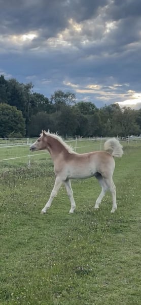Dieser hübsche Edelbluthaflingerhengst sucht ein neues Zuhause. Er kennt das Fohlen ABC, durfte seinen ersten Sommer mit seiner Mutter und seiner Vollschwester auf der Wiese verbringen und ist nun bereit für sein erstes Abenteuer. Er ist ein charmanter, aufgeweckter Kerl mit viel Energie. Er bringt viel Potenzial für die Dressur, aber auch für Springprüfungen mit. Mutter: Melina v. Nebos I (Dressur bis Kl.M / Springen bis Kl. A) Vater: Pr.H Amani v. Apiko (Dressur bis Kl.S*** / Springen und VS bis Kl.A) Bei Interesse können gerne Videos zugesendet werden.