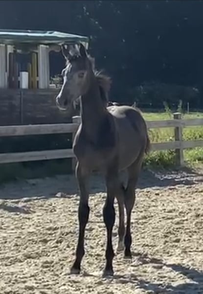 He has 3 very good GGA, is equipped with the necessary self-confidence and the whole thing combined with a great character. He is super halter-guided, can be touched everywhere and gives hooves all around. His dam is placed up to show jumper L. We would like him to have a supportive home where he can also be a horse.