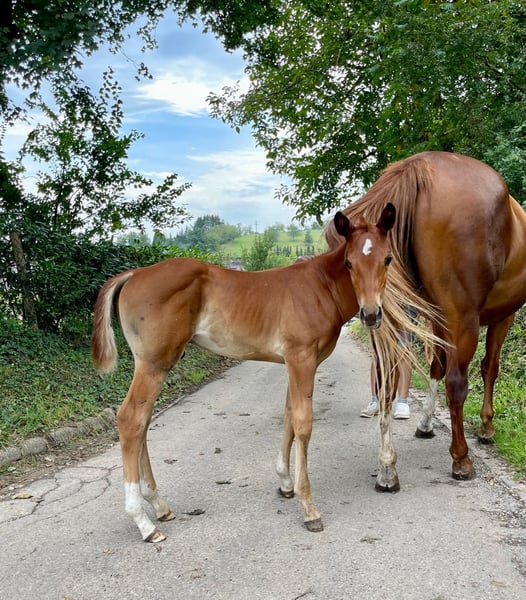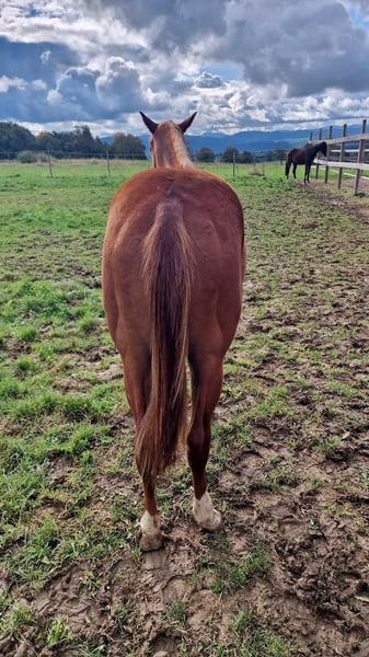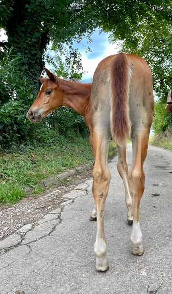Anche noi stiamo cercando una casa a 5 stelle per il nostro "Leo". Il fresco stallone Quarter Horse (nato nel 2023) ha visto la luce con noi. Anche i suoi genitori sono nella nostra fattoria: Damigella: TL Blue Alice (Aint It The Blues) Sire: Zippos King Bar Leo è un "calzino fresco" sotto tutti i punti di vista. Vuole sempre compiacere il suo padrone ed è sempre calmo e tranquillo. Ha una conformazione atletica e corretta ed è dotato di un'andatura eccezionale. È adatto sia alle competizioni che al tempo libero. Attualmente è ancora uno stallone e non mostra alcun comportamento da stallone. È semplicemente un tesoro da gestire. Ha imparato tutto ciò che è necessario sapere a questa età: Dare gli zoccoli, presentarlo al maniscalco, fare la toelettatura, fare la doccia/lavaggio, camminare/guidare. Leo ha tutte le vaccinazioni di base, è regolarmente sverminato, ha un passaporto equino DQHA e un certificato di registrazione AQHA. Attualmente viene allevato con altri cavalli giovani. Può rimanere qui per un ulteriore allevamento o trasferirsi nella sua nuova casa. Se volete conoscere Leo, scriveteci.