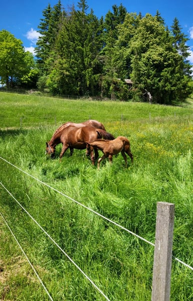 For our "CHLOE" (U R My Dancingqueen), we are also looking for a 5-star home. The beautiful Quarter Horse filly (born March 2025) has seen the light of day here with us. Her parents are also on our farm: Mother: Dancing in the Moonlite Father: Zippos King Bar Chloe is a stunning filly. Her coat color is hard to describe: a dark chestnut with a slight copper tint in the sun, which makes her coat shine. Her small white blaze gives her a very special distinguishing feature and adds a certain something to her appearance. She has a great conformation and her potential is already unmistakable. Her curious and lively nature makes it impossible not to fall in love with her. She will be suitable for both competitions and leisure activities. So, anyone looking for something truly special will not be disappointed by Chloe! Chloe has an equine passport from the DQHA, is enrolled in DQHA Infurity, and has the American papers (certificate of registration) from the AQHA. She is currently still with her mother in our open stable/on the pasture. She can either stay here for further rearing or move to her new home as soon as she is ready to be without her mother. If you would like to get to know Chloe or have any further questions, please feel free to contact us.
