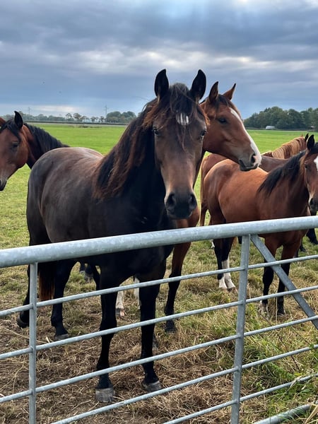 Excellent, personable, and high-quality mare from a proven Holsteiner dam line. The mare is still in her upbringing within a herd. Regularly attended by the farrier, vaccinated, and dewormed. More information gladly provided via WhatsApp or by phone at +49 172 1743163.