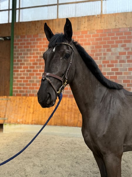 Inquiries only by phone or WhatsApp at +49 151 53797080. For sale is this 4-year-old mare by Pacific x Dario x Liberty Son. She is currently measured at 16.1 hh and demonstrates a lot of quality and caution when free jumping. In handling, she is well-behaved and uncomplicated, and she is already starting to go under saddle for her first rides. She also proves to be easy to handle in this regard. A current veterinary certificate is available. Videos can be sent upon request. Please note that this is a young horse that has only been under saddle for less than two weeks. For the horse's protection, trial riding is not possible at this time. However, lunging and free jumping are no problem.