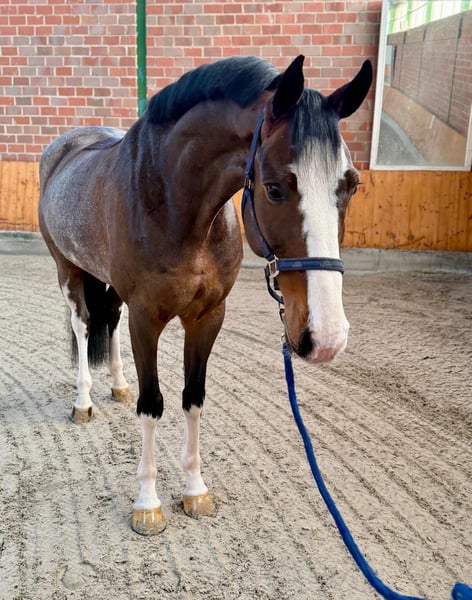 Inquiries should only be made via phone or WhatsApp at +49 151 17665701. For sale is this 7-year-old gelding by Cabrio van the Heffink. He stands 16.1 hh and has currently achieved placements up to 1.20 m in competitions. He is a horse with plenty of blood and scope for jumping. Never spooky at the jump and 100% honest, but he can sometimes be a bit sensitive to his environment and a bit spooky. Therefore, he is not an ideal horse for amateurs. A skilled rider will surely find him to be a high-level sport horse. Current veterinary certificate available. Videos can be sent upon request. Due to riding tourism, we charge €30 for a trial ride, which will be deducted from the purchase price. For straightforward buyers, the price is negotiable.