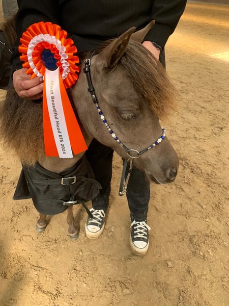 Ze is een ontzettend mooie lieve merrie en heeft als jaarling de titel het mooiste hoofdje gehaald bij de europese falabella keuring