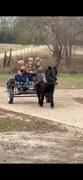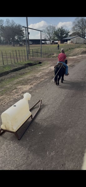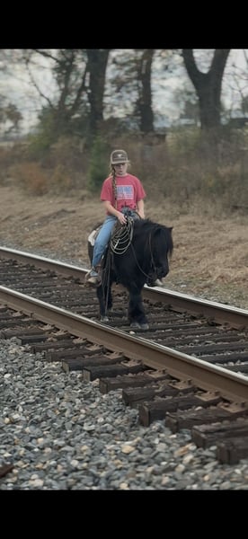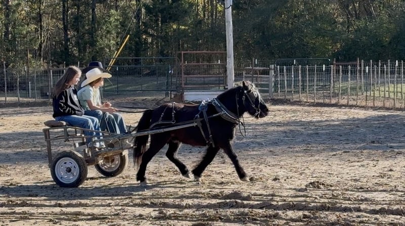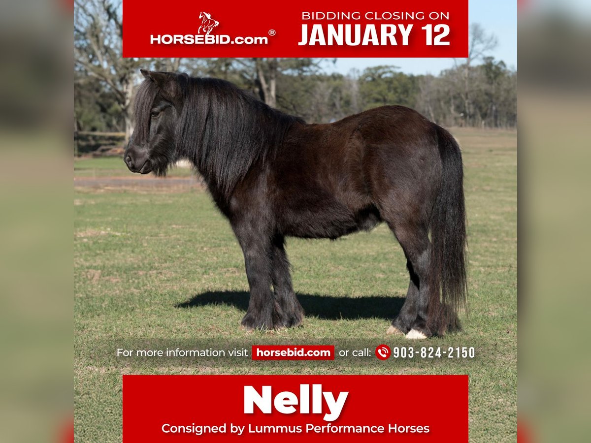 ♦️𝐍𝐄𝐖 𝐘𝐄𝐀𝐑'𝐒 𝑬𝒙𝒕𝒓𝒂𝒗𝒂𝒈𝒂𝒏𝒛𝒂♦️ Happening now thru MONDAY | JANUARY 12th - Available EXCLUSIVELY on HorseBid's website! For more details and to register visit: www.Horsebid.com CONSIGNOR CONTACT: Lummus Performance Horses 903-824-2150 LOCATION: Bloomburg, TX BREED: Fell Pony/Pony REGISTERED: No REGISTERED NAME: Nelly COLOR: Black HEIGHT: 42” AGE: 9 GENDER: Gelding “Nelly” is one of the most beautiful half-Fell ponies you’ll find. He is a 9-year-old black gelding, standing 42 inches tall, and he has all the looks and personality, just look at that mane and tail! Nelly is the barn favorite that everyone wants to ride and drive. He is wonderful with kids, loves to be groomed, and has no kick or bite. Truly a big horse trapped in a little horse’s body, Nelly has exceptional manners and a kind, willing attitude. He has been there and done that, both riding and driving. My 7-year-old can drive him anywhere, he has a nice trot that covers a lot of ground. Nelly is 100% gentle with ZERO buck. You can step on him on the coldest morning, even after a month off, and ask him to walk straight off or pick up a lope without hesitation. He is easy to handle and tack up, and under saddle he is an absolute blast. He will walk, trot, lope circles, and has a good stop. We’ve been roping the sled dummy on him and he is doing great. Nelly has been learning barrels, poles, goat tying, and excels at all of them. He goes wherever you point him, over jumps, through creeks, and down the trails. He will walk on a loose rein all day, confidently leading or following on the trail without a care. Nelly has drug logs and barrels, carried tarps, walked over them, and proudly carried the American flag. He’s had kids and dogs running all around him and never bats an eye. He has been hauled to ropings, barrel races, rodeos, jumped courses, worked cows, drug calves, hog hunted, swam ponds, and traveled through everything from thick brush to boggy creeks and down the road. Trains honking and passing don’t bother him at all. He has seen more country than most people! He even rides English, and my kids love jumping him. Both of my girls, ages 7 and 10, catch him by themselves, saddle and bridle him, and ride him everywhere with ZERO help from an adult. Nelly is truly the coolest little guy around, and everywhere we go he gets all the attention thanks to his sweet personality and stunning looks. He leads, loads, ties, bathes, and hauls like a pro. He gets along great with both big horses and minis. He is an easy keeper, and stays fat on air. Nelly is UTD on farrier, vaccinations, and deworming.