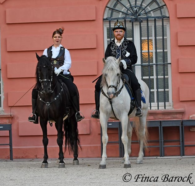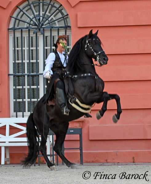 Vom rohen Jungpferd bis zum ausgebildeten Showmaster haben wir viele verschiedene Pferde im Stall, überwiegend spanische Pferde.