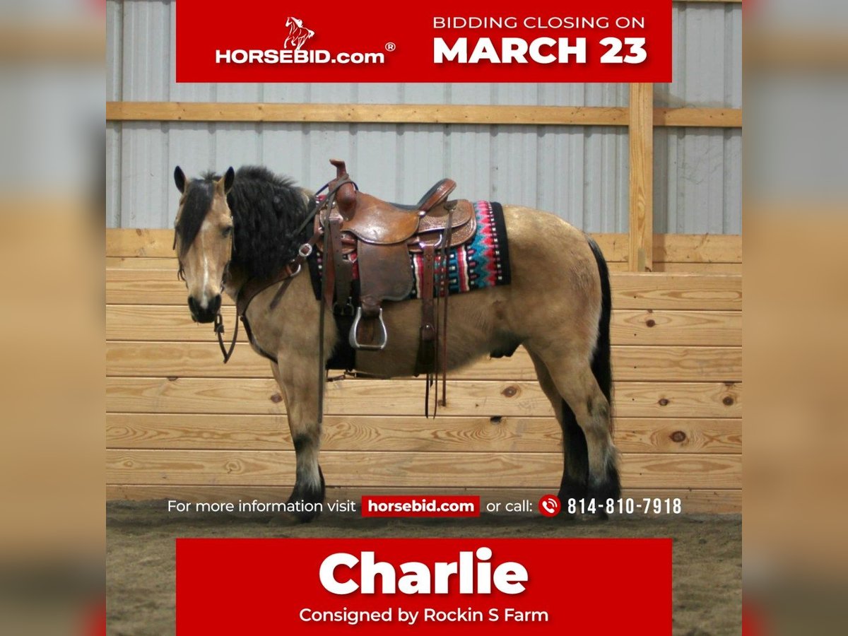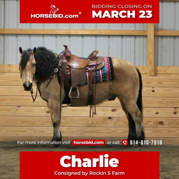 ⚜️𝓽𝓱𝓮 𝐆𝐎𝐋𝐃 𝓢𝓮𝓵𝓮𝓬𝓽⚜️ Happening now thru MONDAY | MARCH 23rd - Available EXCLUSIVELY on HorseBid's website! For more details and to register visit: www.Horsebid.com CONSIGNOR CONTACT: Rockin S Farm 814-810-7918 LOCATION: Rebersburg, PA BREED: Fjord/ haflinger cross REGISTERED: No COLOR: Buckskin HEIGHT: 13.3 AGE: 12 GENDER: Gelding Charlie 💥💥 As unique and individual as you will find! We are honored to be able to offer you this gorgeous buckskin Fjord cross! A rare find in the buckskin color that is very easy on the eyes and is also very well broke to ride and drive, he drives super nice in a team as well if you are looking for one that has been there and done that check out Charlie , he has been driven in parades and used to haul manure and make hay , so he's been exposed to most anything possible! Charlie rides excellent out on the trails and will go wherever you point him without hesitation he will step over logs and go through creeks, he's been ridden in traffic with no issues whatsoever, he is friendly and easy to get along with, he would be a perfect candidate for a lesson program or beginner horse or your very own heart horse with his friendly personality and easy going disposition plus he's a handy size that's built Stout enough to carry any rider, he will also ride in the arena and has a Smooth walk-trot-canter and safe for all ages from children to adults Charlie is really a dream horses that doesn't come along very often especially not in the fancy buckskin color so don't miss your chance ! Charlie sells 100% sound and requires no maintenance, he is healthy and up-to-date on farrier and dewormer as well as a current Coggins and health certificate ready for his forever home We are happy to assist in arranging transportation anywhere in the US If you have any questions on Charlie or Chad please feel free to call Sam 814-810-7918, we are happy to have you come meet him or answer any questions you have