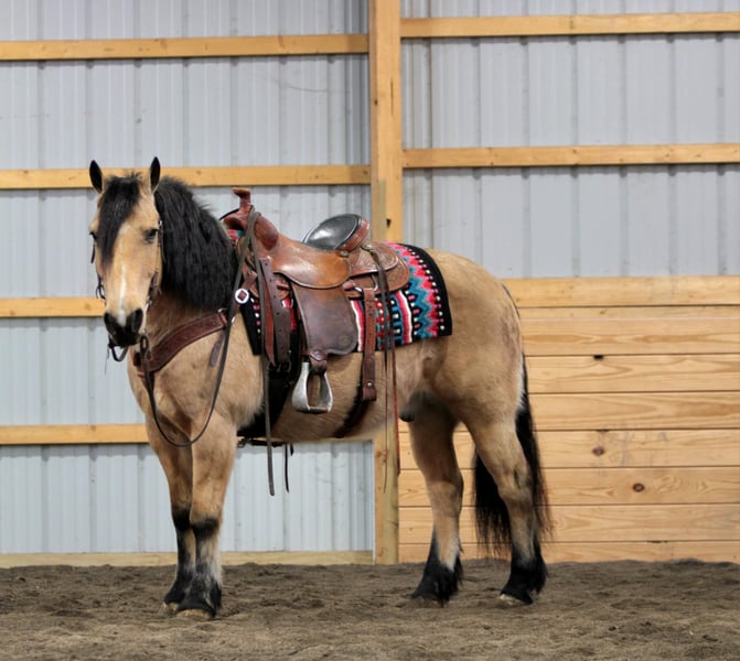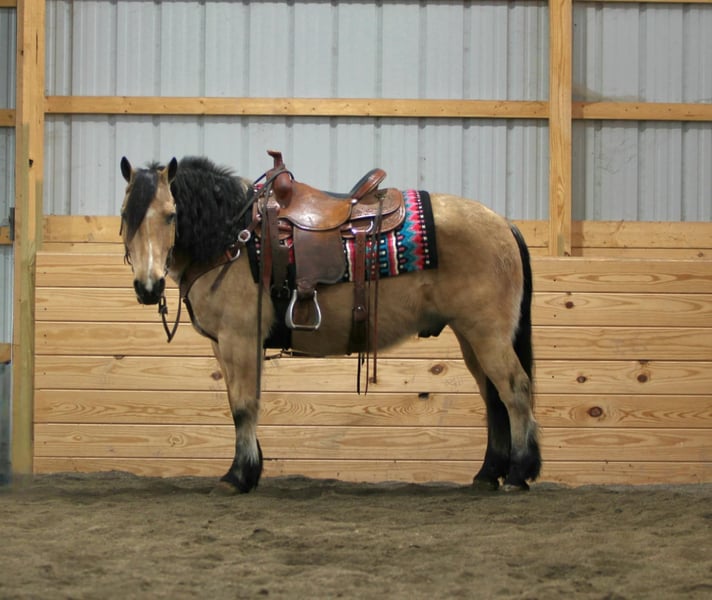 ⚜️𝓽𝓱𝓮 𝐆𝐎𝐋𝐃 𝓢𝓮𝓵𝓮𝓬𝓽⚜️ Happening now thru MONDAY | MARCH 23rd - Available EXCLUSIVELY on HorseBid's website! For more details and to register visit: www.Horsebid.com CONSIGNOR CONTACT: Rockin S Farm 814-810-7918 LOCATION: Rebersburg, PA BREED: Fjord/ haflinger cross REGISTERED: No COLOR: Buckskin HEIGHT: 13.3 AGE: 12 GENDER: Gelding Charlie 💥💥 As unique and individual as you will find! We are honored to be able to offer you this gorgeous buckskin Fjord cross! A rare find in the buckskin color that is very easy on the eyes and is also very well broke to ride and drive, he drives super nice in a team as well if you are looking for one that has been there and done that check out Charlie , he has been driven in parades and used to haul manure and make hay , so he's been exposed to most anything possible! Charlie rides excellent out on the trails and will go wherever you point him without hesitation he will step over logs and go through creeks, he's been ridden in traffic with no issues whatsoever, he is friendly and easy to get along with, he would be a perfect candidate for a lesson program or beginner horse or your very own heart horse with his friendly personality and easy going disposition plus he's a handy size that's built Stout enough to carry any rider, he will also ride in the arena and has a Smooth walk-trot-canter and safe for all ages from children to adults Charlie is really a dream horses that doesn't come along very often especially not in the fancy buckskin color so don't miss your chance ! Charlie sells 100% sound and requires no maintenance, he is healthy and up-to-date on farrier and dewormer as well as a current Coggins and health certificate ready for his forever home We are happy to assist in arranging transportation anywhere in the US If you have any questions on Charlie or Chad please feel free to call Sam 814-810-7918, we are happy to have you come meet him or answer any questions you have