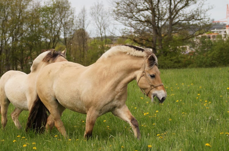 As the Haflinger is always chestnut, the Norwegian Fjord always appears as dun. It is also known under names as Norwegian Dun, Norwegian Pony, West Norway, West Norwegian, Westland or Northern Dun. There are different shades of the base color, which range from the lightest to the deepest dun. In add ... More about the horse breed Fjord Horses