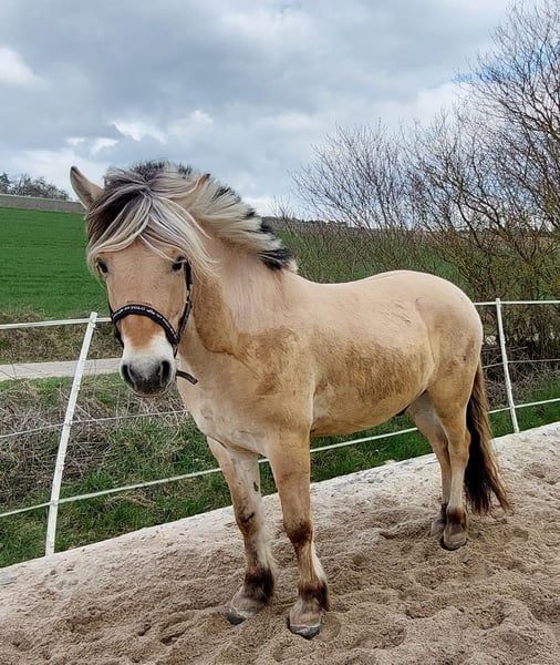 Verkaufen schweren Herzens unseren 4- jährigen Fjord- Wallach im Endmaß.