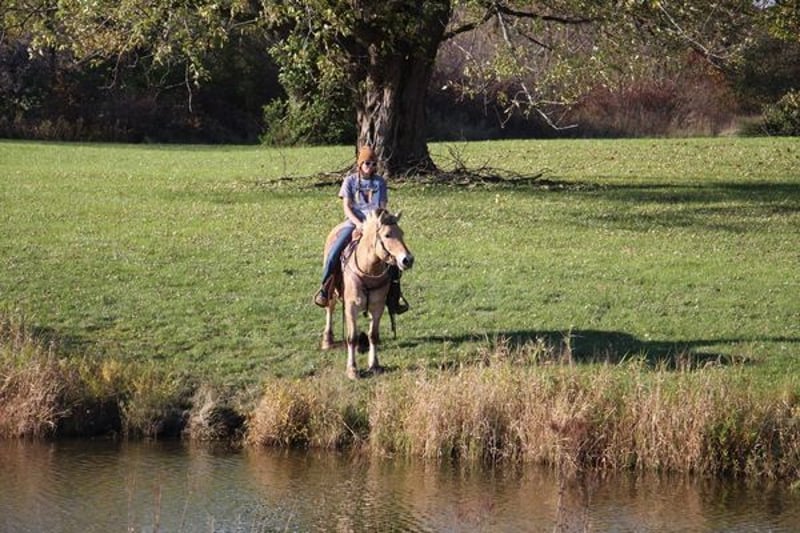 Hallo, mein Name ist Oliver! Ich bin ein 5-jähriger Norwegischer Fjord-Geländeschecke mit einer kräftigen Größe von 14 Hand. Ich bin äußerst liebevoll, zielstrebig, fröhlich und mutig. Jetzt möchte ich dir erzählen, was ich alles kann! Für mich gibt es keine Grenzen – vom Wanderritt über Springen bis hin zum Kutschfahren, ich kann alles. Ich bin ein Allwetter-Typ: Bei tiefstem Schnee nehme ich gerne die Ausfahrt, die Kälte hat mich nie gestört. Oder bei warmem Sommerwetter, ich bin bei beidem glücklich. Ich stehe den ganzen Tag geduldig für Pflege, Streicheleinheiten, Sattel- und Zaumzeugwechsel, Clippen usw. zur Verfügung. Ich liebe Menschen und Aufmerksamkeit. Auch mit meinen Artgenossen komme ich gut aus. Ich bin ein unkomplizierter Kerl. Meine drei schönen Gänge sind ein ruhiger Schritt, ein geschmeidiger Trab und ein ausgeglichener Galopp. Ich kenne meine Führungswechsel und habe tolle Übergänge. Viele Stunden habe ich im Wald auf Trails verbracht. Nichts macht mir etwas aus: Wanderwege, Wildtiere, steile Hügel, Fahrräder, Verkehr – ich bin überall gelassen. Meine Familie hat mich schon auf viele Campingausflüge mitgenommen, und ich liebe Abenteuer! Im Reitplatz bin ich ebenfalls geritten worden, kenne die Grundbewegungen des Dressursports. Ich liebe Springen und wurde schon gesagt, dass ich sehr süß bin. Ich galoppiere ruhig und gleichmäßig um einen Parcours und scheue vor nichts zurück. Bei mehreren Turnieren war ich dabei und habe viele Handpferdereiten gemacht! Im Kutschdienst bin ich einzeln, zu zweit und sogar in einer Vierer-Gespann gefahren worden. Ich bin schon die Straße entlang und in die Stadt geritten, und alle bleiben stehen, um zu sagen, wie süß ich bin. Mein ideales Zuhause wäre eine Familie, die mich liebt und entweder mit mir auf den Trails unterwegs ist oder mich im Reitplatz nutzt. Ich bin ein selbstbewusster und liebevoller Kerl!