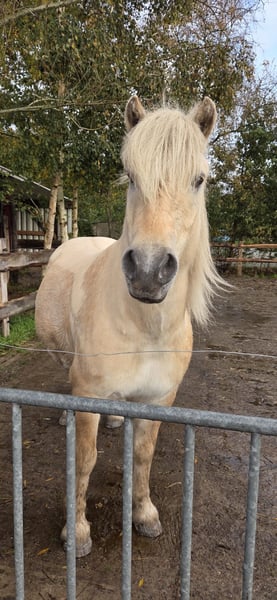 Schweren Herzens suche ich ein neues Zuhause für meinen 9- jährigen Fjord- Wallach. Galileo ist als Gelbfalbe ein absolutes Unikat! Sehr gute Abstammung mit vollem Papier. Er ist 1,40m groß und somit kein Gewichtsträger. Er wurde bisher westerngeritten (beidhändig). Da er viel Potential hat, welches ich aktuell zeitlich bedingt nicht fördern kann, kann ich ihn mir später durchaus auf dem ein oder anderen Turnier vorstellen. Er wurde beim Züchter auch bereits eingefahren, hat seitdem aber keine Kutsche mehr gezogen. Er ist sehr fein zu reiten- den klassischen Pony- Dickkopf hat er nicht. Vom Boden und im Sattel macht er alles ganz toll mit und lernt auffällig schnell. Da er Sicherheit von oben braucht, ist er noch kein reines Anfängerpferd (das gilt nicht für Bodenarbeit- da ist er Profi). Er klebt nicht und geht ohne Probleme alleine vom Hof. Ich bin mir sicher, dass er mit entsprechender Routine ein sehr gutes Geländepferd wird. Galileo geht problemlos auf den Anhänger, ist bei der Hufpflege und allgemein im Umgang absolut lieb und hat keine Unarten. Mit einer entsprechenden Ausbildung kann ich ihn mir auch sehr gut als Therapiepferd vorstellen. Galileo ist ein Pferd, dass gerne arbeitet und abwechslungsreiche Bewegung braucht. Er hat ein Ekzem, welches ich aber mit Decken sehr gut im Griff habe. Ich gebe mehrere sehr hochwertige Decken ohne Aufpreis dazu. Bei mir kommt er im Sommer nur stundenweise auf die Weide, bekommt aber 24/7 Heu im Netz. Er hat keinen chronischen Husten o.ä. Er steht im Offenstall und ist dort auch glücklich. Er kennt Boxen und steht auch dort ganz lieb, aber ich wünsche mir keine reine Boxenhaltung für ihn. Zähne, Hufe, Entwurmung, Impfungen wurden regelmäßig gemacht. Es handelt sich nicht um einen Notverkauf! Ich gebe ihn nur in beste Hände und auch nur, weil sich meine Lebensumstände geändert haben und ich mir für ihn einfach ein Leben wünsche, wo er mehr gefördert wird. Händler zwecklos. Für ein Probereiten nehme ich 40€ die beim Kauf verrechnet werden, um Reittourismus zu vermeiden.