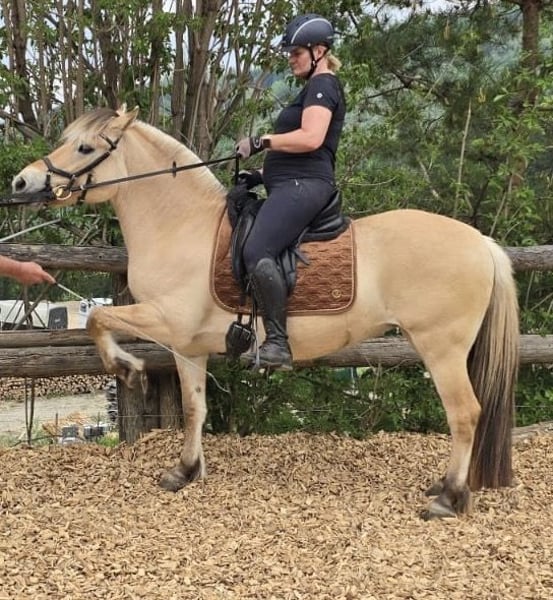 Zum Verkauf steht eine gut in der Dressur gerittene Fjordstute .Sie ist bestens Ausgebildet vom Boden kann Zirkuslektionen Ist super brav im Umgang sehr ruhiges Wesen Eine Lebesversicherung im Gelände Bestens für Anfänger und Angstreiter geeignet . Sie wurde regelmäßig geimpft Tetanus sowie Influenza regelmäßig wurden auch ihre Zähne gemacht .sie ist ein wundervolles Pferd es tut mir im Herzen weh aus persönlichen Gründen muss ich sie hergeben Leider Sie wird mit gesamten Zubehör verkauft Halfter,Trense ,angepasster Monoblattsattel (2500€] hat er gekostet Decken ,Schabracken ( Ps of Sweden , Eskadron etc.