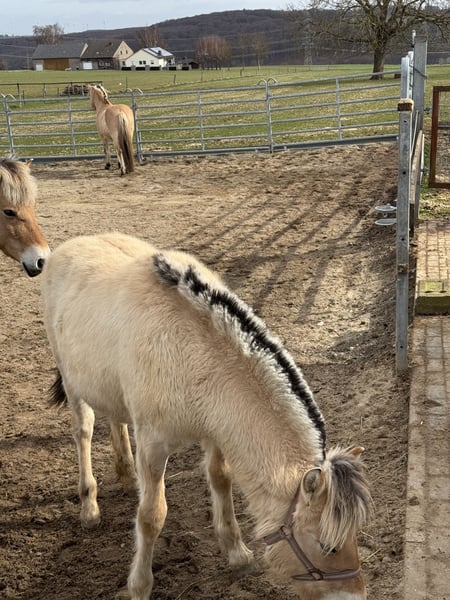Norweger Stutfohlen wächst in der Herde auf mit Hengst und Stuten und älteren Fohlen Das Fohlen ABC kennt sie Halfterführig Sehr Menschenbezogen Bei weiteren Fragen bitte anrufen oder besichtigen