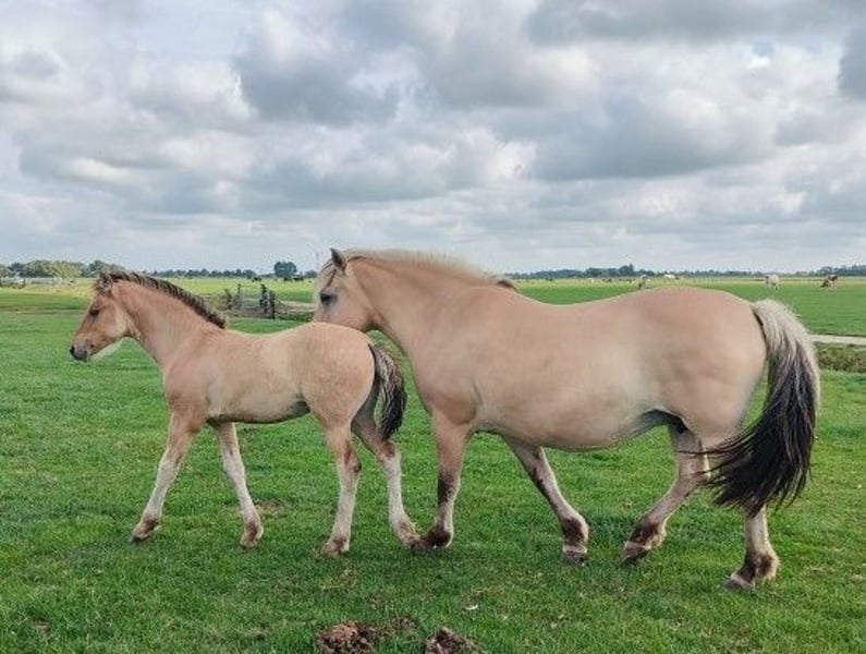Prachtig bay dun Fjord x Fries merrieveulen met aalstreep