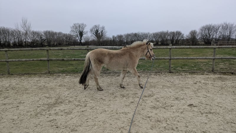 For sale: my 4-year-old Fjord horse (born June 15, 2022) with a current height of 13.6 hands. She is familiar with basic foal training and has been lunged. She receives regular vaccinations and hoof care from a professional farrier. She holds full registration papers with the Schleswig-Holstein Horse Breeding Association, so she is also suitable for breeding. Her sire is a licensed stallion, and her dam was a broodmare for many years with a Fjord horse breeder. She is located at my home and can be viewed in person. Additional photos and videos available upon request.