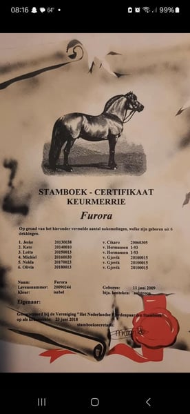 Beautiful black-red colt foal for sale. From a highly proven bloodline. Wiltred van Fjordenhouderij Het Compas is a son of the beautiful approved stallion Neral, who has just been sold to Australia. He is also a grandson of Gio. A full brother to this foal is Uhtred van Fjordenhouderij Het Compas, who was sold to France in 2023 with the intention of being used for breeding. We also bred a colt from this stallion in 2023: Uhral van Fjordenhouderij Het Compas. This colt has also been sold and is in England with the same purpose. A wonderful addition to the breeding program. The dam is by the proven stallion Topas (dam's sire Zortin). A truly beautiful, old bloodline. We are unable to keep stallions ourselves. We're offering this beautiful, correct, Rodblakk for the right home. We'd love to keep him intact, with the goal of making him a valuable addition to our breeding program. If you have any questions, please contact us.