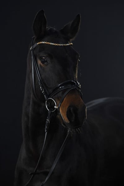 This stunning, compact mare captivates with her expressive appearance and three equally good basic gaits. She is trained up to level M. An excellent prospect for both ambitious dressage riders and for daily, joyful work at home. She presents herself with a pleasantly balanced temperament, is neither spooky nor nervy, and impresses with her calm demeanor combined with willingness and effort. Additionally, she is very seat-friendly and provides the rider with a secure, harmonious feeling. With her special charm and presence, she is a real eye-catcher – a horse to fall in love with, with sporting potential. She comes directly from the breeder and has been lovingly and well cared for during her upbringing. She has only known positive experiences. Her close bond with humans is clearly noticeable. A current, valid health certificate is available. Of course, she is shoe- and loading-friendly. Further information gladly upon request.