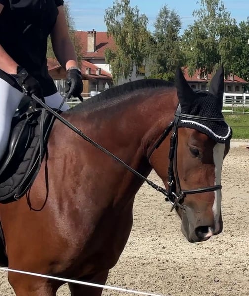 Lasco (Lionel/Everton) is een lieve, aanhankelijke en mensgerichte 4-jarige Freiberger ruin met een uitstekend karakter en een aangenaam temperament. Hij is zeer nieuwsgierig en helemaal niet bang aangelegd. Momenteel meet hij 1,60 m schofthoogte. Hij is zeer gemotiveerd en wordt altijd enthousiast als er iets met hem gedaan wordt, of het nu grondwerk, als handpaard in het terrein, rijden of longeeren is – hij is altijd volledig geconcentreerd. Zijn sterke punten liggen in de stap en de versterking van de draf. Ik heb hem als veulen gekocht en zelf opgeleid; hij is bij ons thuis opgegroeid samen met zijn halfbroer en twee andere paarden. Hij kent Parelli-grondwerk, klassieke longeertechnieken, handpaard in het terrein, rijden en rijden en rijden zowel op de piste als in het terrein. Hobbelen en hoefsmid zijn voor hem normale routines. In september 2025 heb ik met hem de veldtest gedaan, die hij met zeer goede cijfers heeft afgerond (Rijden 7,8 / Longeren 8,57). Hij heeft ook al eerste wedstrijdervaring opgedaan (3-jarige promotie, dressuur en kegelfahren), en beide heeft hij met verve volbracht. Bij serieuze interesse hoor ik graag van u en ik geef indien gewenst graag meer informatie.