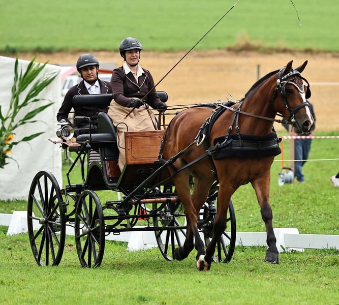 Lasco (Lionel/Everton) ist ein liebenswerter, anhänglicher und menschenbezogener 4-jähriger Freiberger Wallach mit einem 1a Charakter und angenehmem Temperament. Er ist sehr neugierig und überhaupt nicht ängstlich. Aktuell hat er ein Stockmass von 1.60 m. Er ist hochmotiviert und freut sich immer, wenn man mit ihm etwas unternimmt, sei es Bodenarbeit, als Handpferd mit ins Gelände, Reiten oder Fahrtraining, er ist immer voll und ganz bei der Sache. Seine Stärken sind der Schritt und die Trabverstärkung. Ich habe ihn als Fohlen gekauft und selber ausgebildet, er ist bei uns zu Hause zusammen mit seinem Halbbruder und 2 anderen Pferden aufgewachsen. Er kennt Bodenarbeit nach Parelli, Longenarbeit klassisch, Handpferd im Gelände, Reiten und Fahren auf Platz wie auch im Gelände. Hängerverladen und Hufschmied sind für ihn ganz normale Routinen. Im September 2025 habe ich mit ihm den Feldtest gemacht, welchen er mit sehr guten Noten abgeschlossen hat (Reiten 7.8 / Fahren 8.57). Er hat auch schon erste Turniererfahrungen gesammelt (Promotion 3-Jährige, Dressur und Kegelfahren), beides hat er souverän gemeistert. Bei ernsthaftem Interesse freue ich mich auf Ihre Nachricht und kann gerne auch noch weitere Auskünfte erteilen.