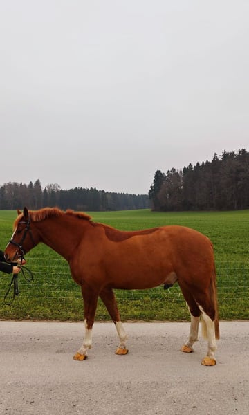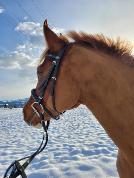 Notre hongre Freiberger de 4,5 ans, Aladin, a réussi avec succès le test de terrain en 2024. Il est désormais prêt à être vendu. Actuellement, le cheval vit en groupe, mais il connaît également la vie en box avec paddock. Il se montre très volontaire à l'apprentissage, fiable et toujours ouvert à de nouvelles expériences. Aladin est régulièrement monté en extérieur et en manège. Il est sûr en terrain, dans le trafic, ferré et facile à charger. En raison de son jeune âge, il n’est pas adapté aux cavaliers débutants. Ce hongre Freiberger mesure environ 1,58 m au garrot. De plus, il est très confiant et proche de l’humain. Nous souhaitons lui trouver un foyer aimant, avec beaucoup d’exercice, et éventuellement une personne qui aimerait l’accompagner en carrière d’attelage. C’est avec le cœur lourd que nous vendons Aladin, en raison de la fermeture de notre écurie. N’hésitez pas à me contacter si vous souhaitez faire connaissance avec Aladin en personne.