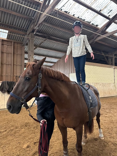 Una est un véritable trésor ! Elle peut partir seule ou en tant que cheval de balade en terrain varié (même avec des enfants ou des cavaliers peu expérimentés), elle est ferrée et débourrée à l’attelage, connaît les chiens, les enfants (même ceux qui passent en trottinette ou à vélo à côté d’elle, ou qui préfèrent s’amuser à la corde à sauter). L’année dernière, elle a été présentée pour la première fois en compétition en Autriche, où elle a directement remporté un ruban. Cette année, lors d’un concours en nuitée, elle s’est classée dans toutes ses courses avec une cavalière de 16 ans. Elle travaille très bien en dressage. Elle connaît aussi le travail à la longe, la désensibilisation et le travail avec un licol, et elle gère toutes ses situations apparemment effrayantes sans broncher. Elle passe sur des matelas, des bâches, connaît les drapeaux, les balles, et supporte patiemment toutes sortes de bêtises. Una est un cheval qui apprécie la diversité des tâches qu’on lui confie. Je ne souhaite pas qu’elle fasse uniquement du dressage en manège ou du saut 4 fois par semaine. C’est en terrain qu’elle s’épanouit vraiment. Le saut lui plaît énormément. Elle connaît le ruisseau et s’est révélée être une petite ratte d’eau. Actuellement, elle cohabite avec deux autres juments dans un grand paddock. Elle est ferrée à l’avant et s’en sort très bien. Pendant tout l’été, elle porte un couvre-rein et un bonnet anti-mouches, car elle est sensible aux piqûres et se gratte beaucoup. Elle ne connaît ni le débourrage, ni le refus de monter ou de faire du bock. En près de 5 ans chez nous, elle n’a eu qu’un seul petit abcès au sabot. Sinon, elle a toujours été en bonne santé. Ses dents ont été vérifiées et la physiothérapie a été faite pour la dernière fois en octobre. Elle sera vendue avec tout son équipement, compris dans le prix : selle de saut Ikonic, bridon, martingale, sous-couverture, couverture de pluie avec couvre-cou, et éventuellement des guêtres et une selle de dressage. Si vous cherchez un cheval qui peut rendre toute la famille heureuse et qui souhaite être entre de bonnes mains, vous êtes au bon endroit. Una ne sera vendue que si tout est en ordre et à des personnes de confiance. Localisation : 85445 Pour plus d’informations, n’hésitez pas à me contacter au : 0176-24989677 Des vidéos seront disponibles prochainement.