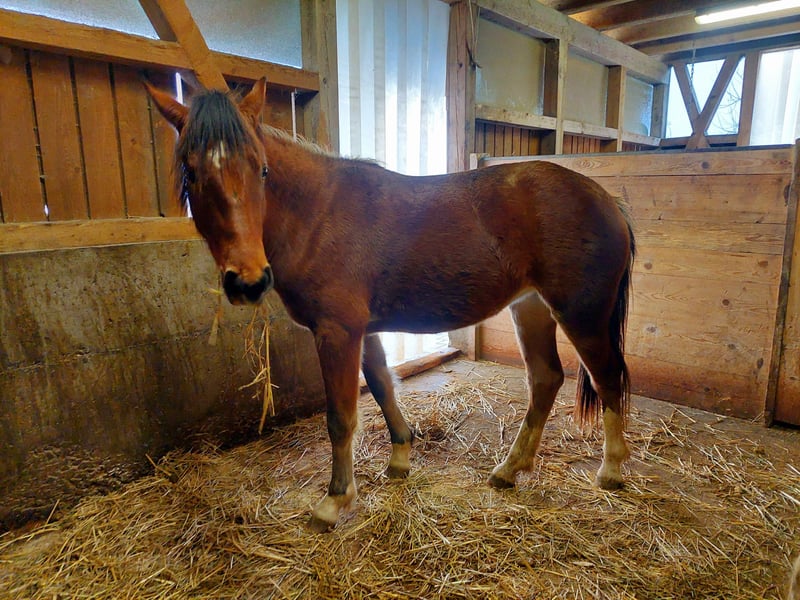 Chaya ist im April 2024 gebohren. Sie ist wunderbar Halfterführig und kennt Hufschmied. Chaya wächst in einer gemischten Herde auf von 1.5 bis 30 Jährig alles dabei. Sie kennt Kinder,Kühe, Hunde, Landwirtschaftliche Maschinen usw. Chaya ist sehr neugierig und möchte nun mehr gefordert werden. Ihre Mutter ist mit 155cm eher klein und Chaya selber wird bestimmt auch nicht grösser. Sie steht bei uns mit einer anderen 1.5jährigen Stute in einer grossen Auslaufbox und ist tagsüber mit der Gruppe auf dem Padok/Weide.
