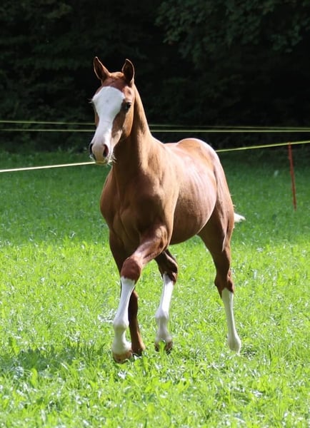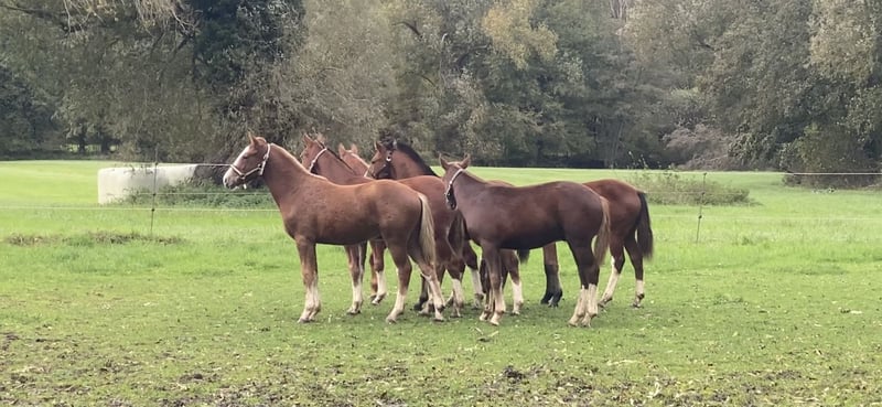 Nuit de la Ravière, que nous appelons Freyja. Je mets en vente ma jeune jument Fribourgeoise. Elle est née en février 2023 et est arrivée chez nous en octobre 2023, avec cinq autres de son âge, en provenance de Suisse. Depuis lors, elle a été élevée dans un groupe mixte, ce qui lui confère un caractère très social et équilibré. Depuis ses poulains, nos petits ont toujours découvert de nouvelles choses afin de pouvoir évoluer plus tard avec calme et confiance dans le monde. Freyja se montre au quotidien absolument amicale, curieuse et facile à vivre. Elle a déjà été longée, a joyeusement porté toutes sortes d’équipements (guêtres, selle, longe, mors, etc.), connaît le travail de la détente et aime énormément aller en manège. Elle se comporte comme une grande même chez le maréchal-ferrant. Elle a été notée lors du concours de poulains en Suisse avec : 7/7/8. Une jument avec de solides bases, une tête claire et beaucoup de potentiel pour l’avenir – que ce soit pour le loisir, le travail en terrain, la reproduction, le western ou plus tard la compétition. Estimation de la taille finale : 1,60 m.
